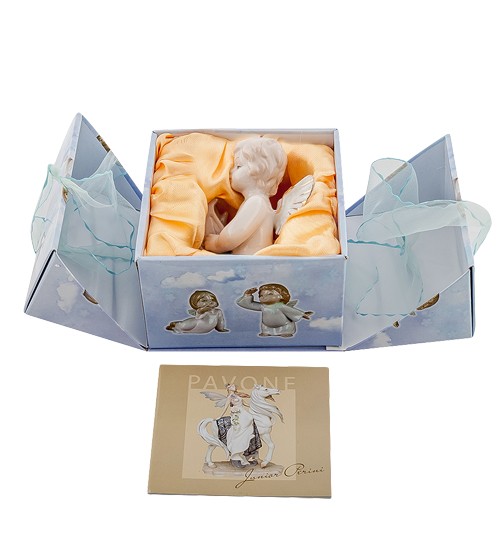 Арфа за своєю формою та звучанням нагадує рай. Не дивно, що на ній грають райські створіння. Фігурка «Янголятко-музикант» - це виріб, виготовлений найкращими фахівцями з високоякісної порцеляни, покритої теплими фарбами глазурі. Ангел як духовний посланець є символом доброти, успіху і високих досягнень. Він посередник між двома світами, між небом та землею, і здатний охороняти та захищати людей від біди та нещастя.