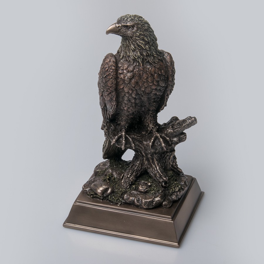Досить потужним та сильним символом є орел. Він символізує силу, міць, перемогу. Такий талісман допоможе знайти істину, вищу мудрість, стати сильнішим. Прекрасно підійде на подарунок босу, колезі, другові. Статуетка з детальним опрацюванням деталей нікого не залишить байдужим та стане чудовим подарунком любителям незвичайних, оригінальних речей. Статуетка "Орел" виготовлена з полістоуну (штучного каменю) та покрита бронзовим напиленням. Запакована в пінопласт та гарну подарункову упаковку.