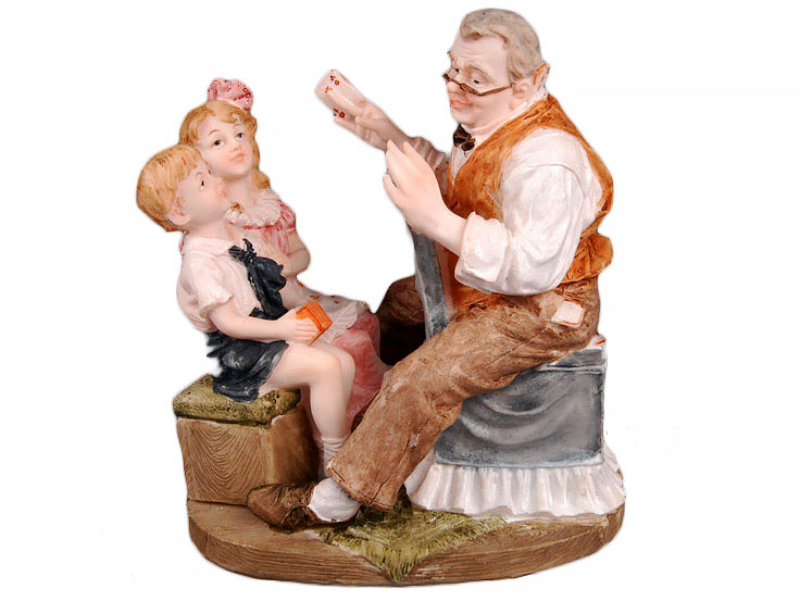 Декоративна фігурка «Дідусь» висотою 19 см виготовлена з полістоуну. Композиція зображує літнього чоловіка, який розповідає щось двом онукам. Детальне опрацювання облич, одягу та аксесуарів надає виробу виразності й затишку.