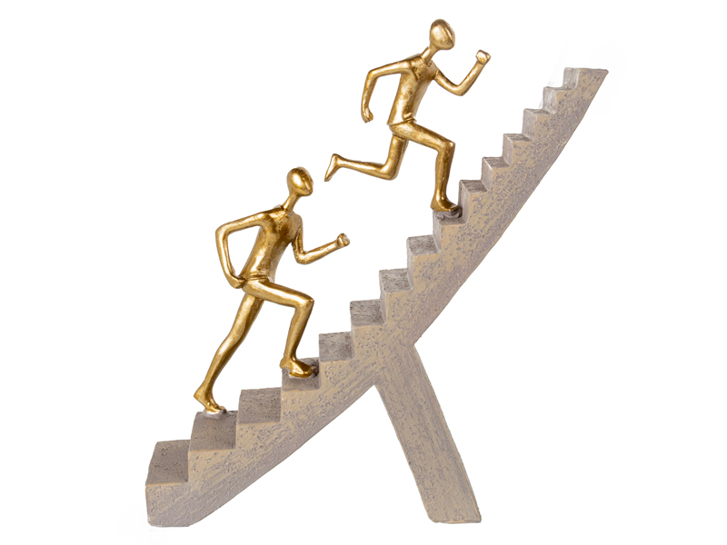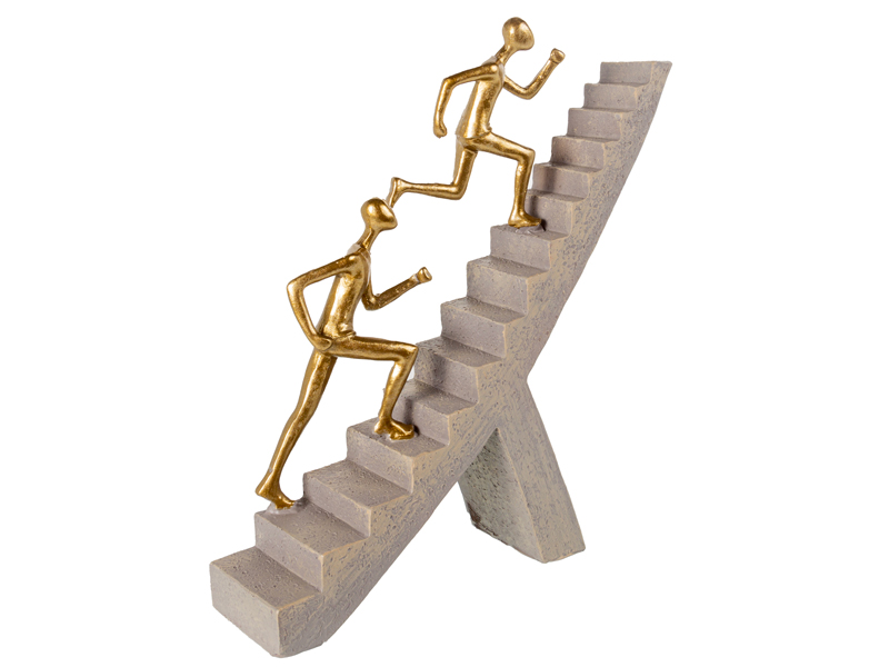 Полістоун, з якого виготовлені ці фігурки, надає їм витонченості та міцності. Золоті силуети людей контрастують із холодним сірим каменем постаменту, створюючи сучасний, стильний акцент в інтер’єрі. Ці скульптури легко впишуться в офіс, кабінет керівника чи домашню бібліотеку, стаючи символом наполегливості та успіху.