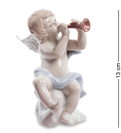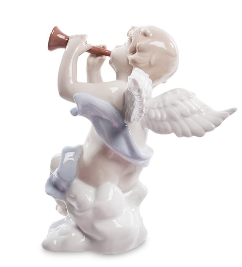 Фигурка фарфоровая Ангелочек с трубой 13 см в подарочной коробке