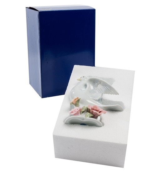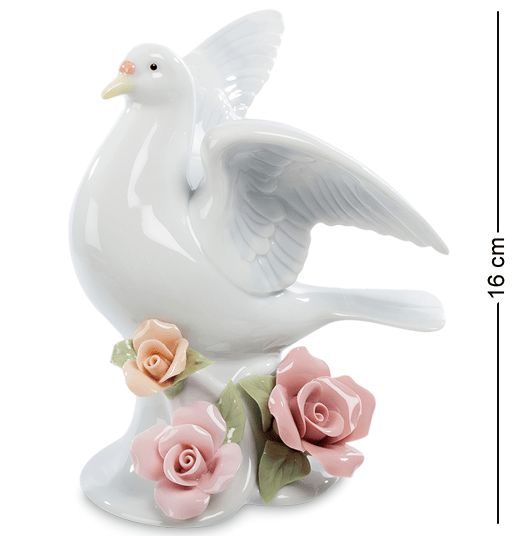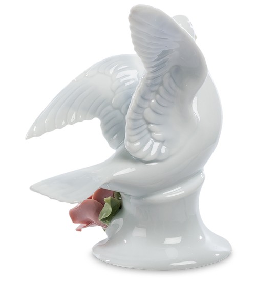 Голубь - красивая птица. Несмотря на отсутствие яркой окраски перьев как у павлина, его изящная шея и мощные, хоть и короткие крылья, могут захватывать взгляд на долгое время. Именно эту птицу считают символом мира, добра и благополучия. Фарфоровый голубь находится среди прекрасных цветов - нежные розы с тонкими фарфоровыми лепестками окружают его. Смотря на окружающих с уверенностью и спокойствием, он напоминает о том, что красота и гармония всегда должны присутствовать там, где голубь мира приземляется. Эту статуэтку можно подарить в знак примирения, забыв о прошлых разногласиях. А в доме она станет прекрасным украшением, ведь голубь - это символ красоты и добра.