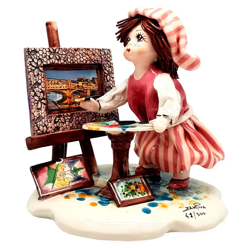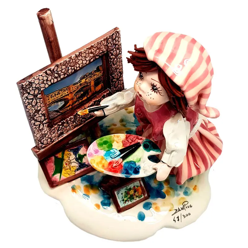 Мягкие пастельные оттенки, округлые формы, выразительные глаза и ручная роспись создают атмосферу уюта, вдохновения и искренности — в фирменной стилистике Zampiva. Фигурка наполнена деталями: кисти, мольберт, аккуратная одежда — всё выполнено с вниманием и теплом.