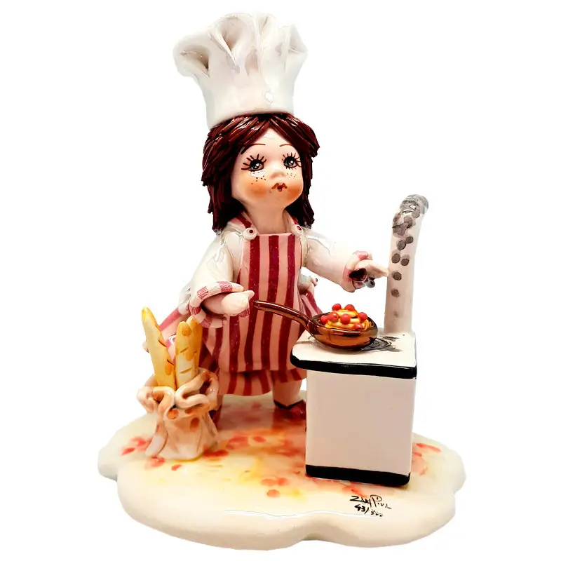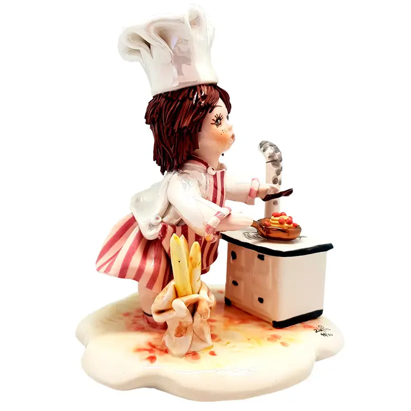 Фигурка "Мамина помощница" от Zampiva — фарфоровое изделие ручной работы, наполненное добротой, заботой и семейным теплом. Высота — 20 см, длина — 16 см. Девочка изображена в фартуке с веником или ведром, символизируя детское стремление помогать взрослым и быть нужной.