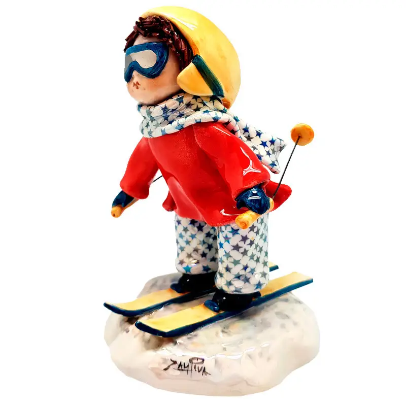 Фігурка з фарфору «Освоюючи лижі» Zampiva, h-16,5; L-10см