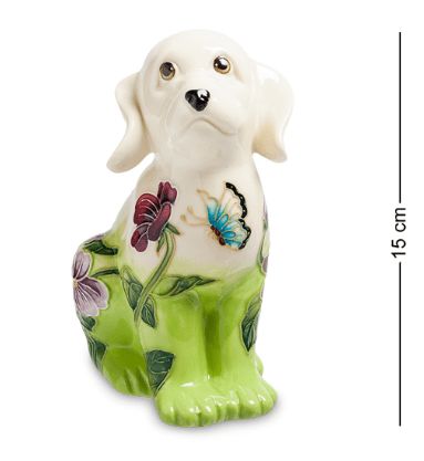 Симпатичний біленький песик гуляє зеленою травою. Ось вона присіла серед квітів, над якими пурхають різнокольорові метелики, і уважно вдивляється – їй почулося, що її гукнув господар. І вона готова зірватися з місця і бігти до нього на перший поклик. Собачка – вірний маленький друг, і якщо з яких-небудь причин завести живого собаку не представляється можливим, нехай у будинку буде хоча б такий порцеляновий песик, який до того ж завжди буде нагадувати про літо, соковиті трави та яскраві квіти. Така фігурка непогано прикрасить кімнату, пожвавивши дизайн інтер'єру, витриманого у будь-якій стилістиці.
