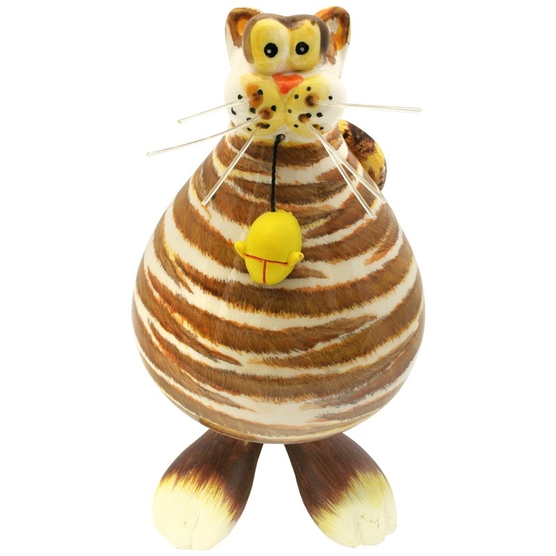 Фарфоровая фигурка полосатого кота с мышкой в зубах. Фигурка на пружинках и при нажатии весело качается.