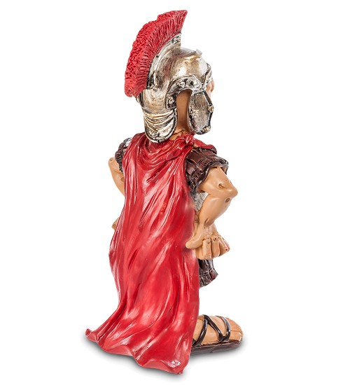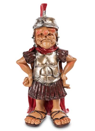 Смішні фігурки римського солдата. Він діловито уперся руками в боки, ніби питаючи: "Гей, ти чого стоїш тут?". Фігурка дуже точно і красиво розфарбована: сандалі, обладунки, одяг, накидка, шкіра, обличчя – все має свій правильний колір. Гарно передані мімічні складки. Цей смішний римлянин прямо оживає при погляді нього. Гарний жартівливий подарунок своєму начальнику чи другу. Купуйте римлянина собі, зберіть усю колекцію, і Ваш інтер'єр прикрасить цілий забавний римський гарнізон.