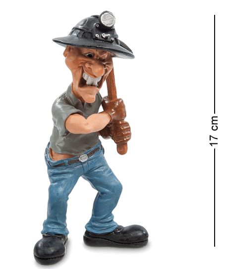 Никто в шахту в рубашке c короткими рукавами не полезет, так что видно, что позирует этот шахтер на поверхности, демонстрируя, что он готов хоть зубами грызть угольный пласт, лишь бы добиться хорошей производительности, добыть рекордное количество угля. Забавная статуэтка шахтера станет памятным подарком для настоящего шахтера – он, конечно, улыбнется, но поставит ее на полочку, чтобы напоминал о работе.