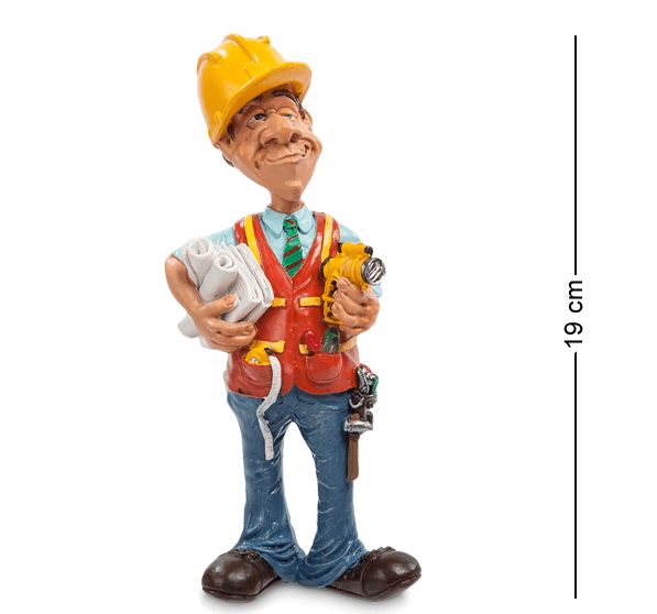 Жартівлива статуетка будівельника. Де будуватимемо будинок? Проект у руках, залишилося втілити його у життя. Майстер-будівельник впевнено дивиться на місце будівництва і, здається, що перед його очима вже постає красень-будинок, якого ще немає. Точніше, є, але на папері.