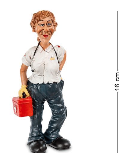 Фігурка лікаря висотою 16 см – стане гарним подарунком як досвідченим професіоналам, так і молодим лікарям. Коли за викликом для швидкої допомоги є така молода і симпатична жінка-лікар, у всіх чоловіків відразу зникає бажання вважати себе хворими. Але якщо бадьорого вигляду і ласкавих очей виявляється недостатньо, то ось, дивіться, валізка з найнеобхіднішим.