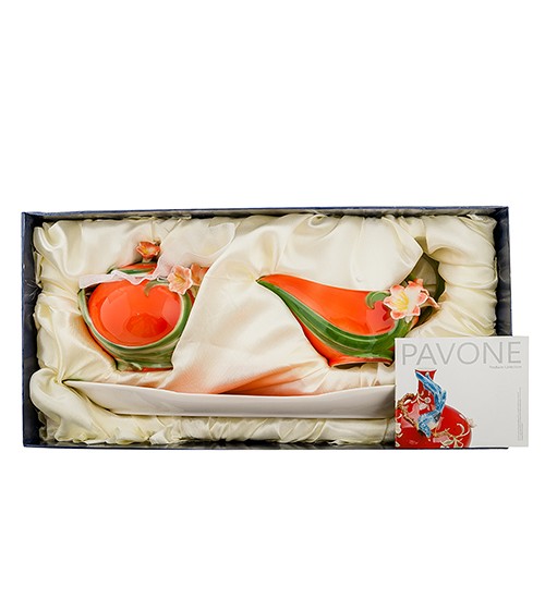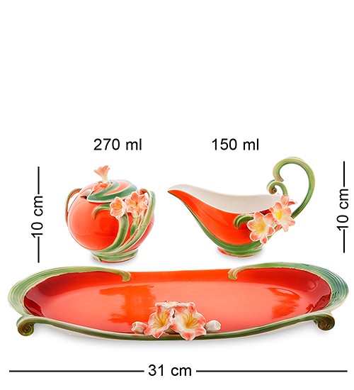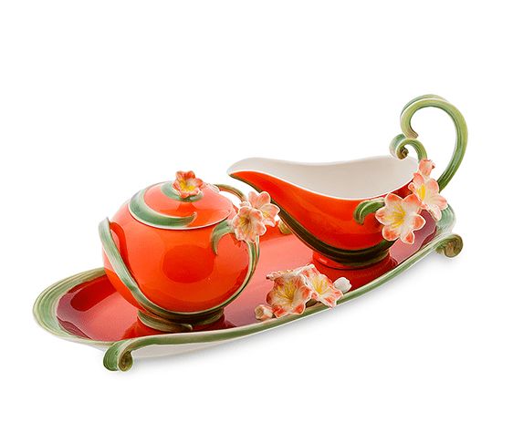 Набор сахарница и молочник "Кливия" - это удачное совмещение практической пользы и удивительной эстетической красоты. Нежные бутоны цветов украшают плавно изгибающийся фарфор, окрашенный в восхитительный цвет солнца.