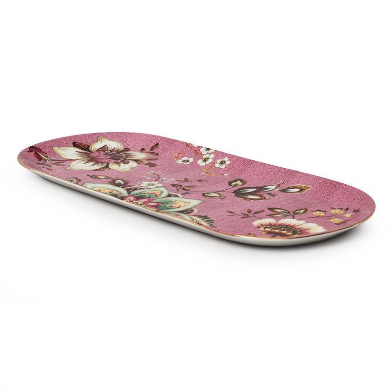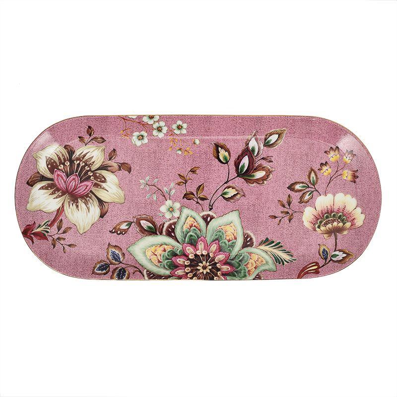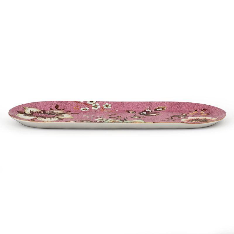 Блюдо овальное фарфоровое розового цвета Цветы 33×15 см