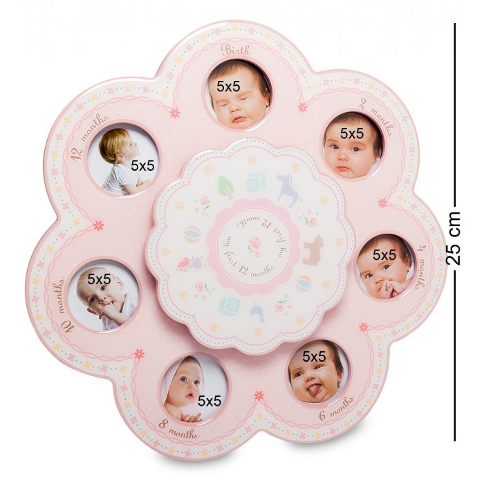 Музична фоторамка на сім фотографій розміром 5х5 см призначена для особливих моментів, таких як народження малюка. Ніщо не зрівняється з цією чудовою подією в житті жінки, і кожна мати прагне сфотографувати всі значущі моменти життя свого малюка. Фоторамка "Перші місяці" призначена для розміщення семи фотографій, зберігаючи перші кроки вашої дитини. Її унікальний дизайн не лише підкреслить важливі моменти з життя малюка, а й приверне увагу оточуючих своєю оригінальністю.