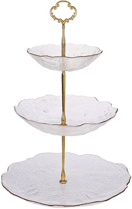 - Три яруси: Секції-блюда різного діаметру (Ø14 см, Ø20 см та Ø26 см) дозволяють подавати кілька видів страв одночасно. Зручне розташування ярусів забезпечує компактність та функціональність.