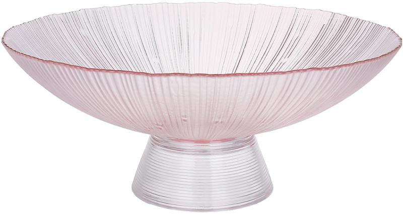 Фруктівниця Lustre — це справжній витвір мистецтва, який стане стильним акцентом у вашому інтер’єрі. Її елегантний дизайн із ніжним рожевим склом, витонченим об’ємним рельєфом та тонкою золотою облямівкою робить фруктівницю ідеальним вибором для сервірування фруктів, десертів чи декоративного оформлення столу.
