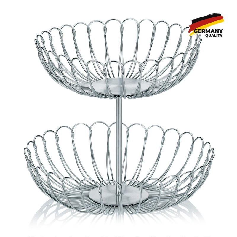 Двухуровневая фруктовница Kela Prato изготовлена из нержавеющей стали 18/10, что обеспечивает ее устойчивость к ржавчине и повреждениям. Металлический стержень соединяет две глубокие тарелки одна над другой. Закругленные к верху борта позволяют расположить фрукты так, чтобы они не скатывались и не выпадали.