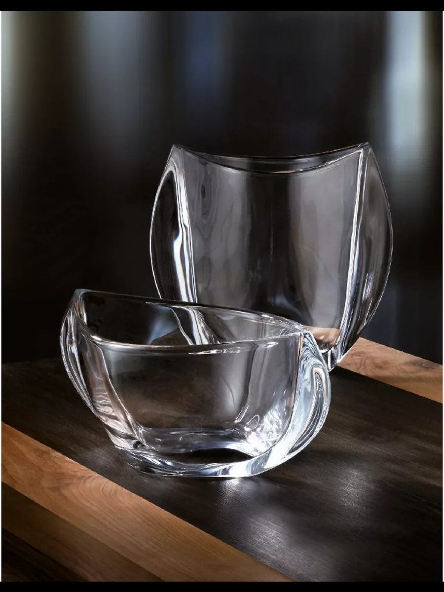 Кожна ваза та фруктовниця виготовлена з високоякісного чеського кришталю, що відомий своєю прозорістю, міцністю та здатністю переломлювати світло. Витончена геометрія колекції підкреслює природну красу матеріалу, створюючи ефект легкості та повітряності.