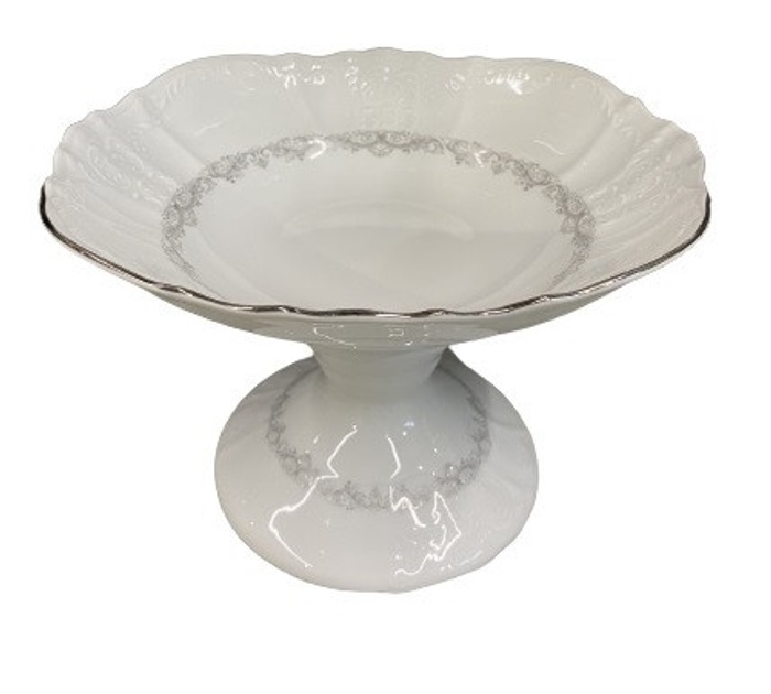 Фруктовница фарфоровая белая декорированная Thun Bernadotte Серебряное Кружево с платиновой каёмочкой 25 см