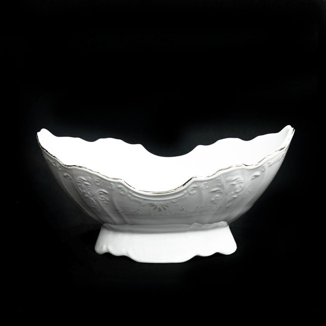 Фруктовниця-човник без ручок біла візерунчаста з платиновою облямівкою Thun Bernadotte Наречена 26.5 см