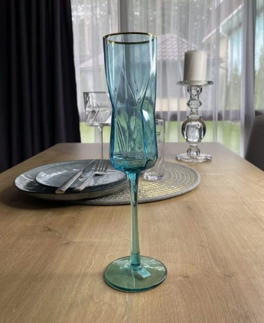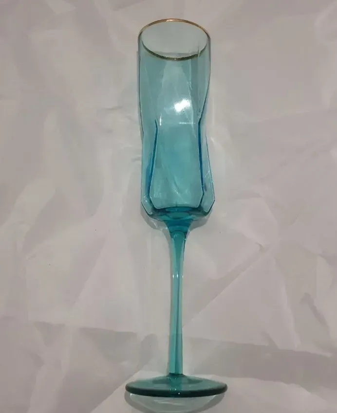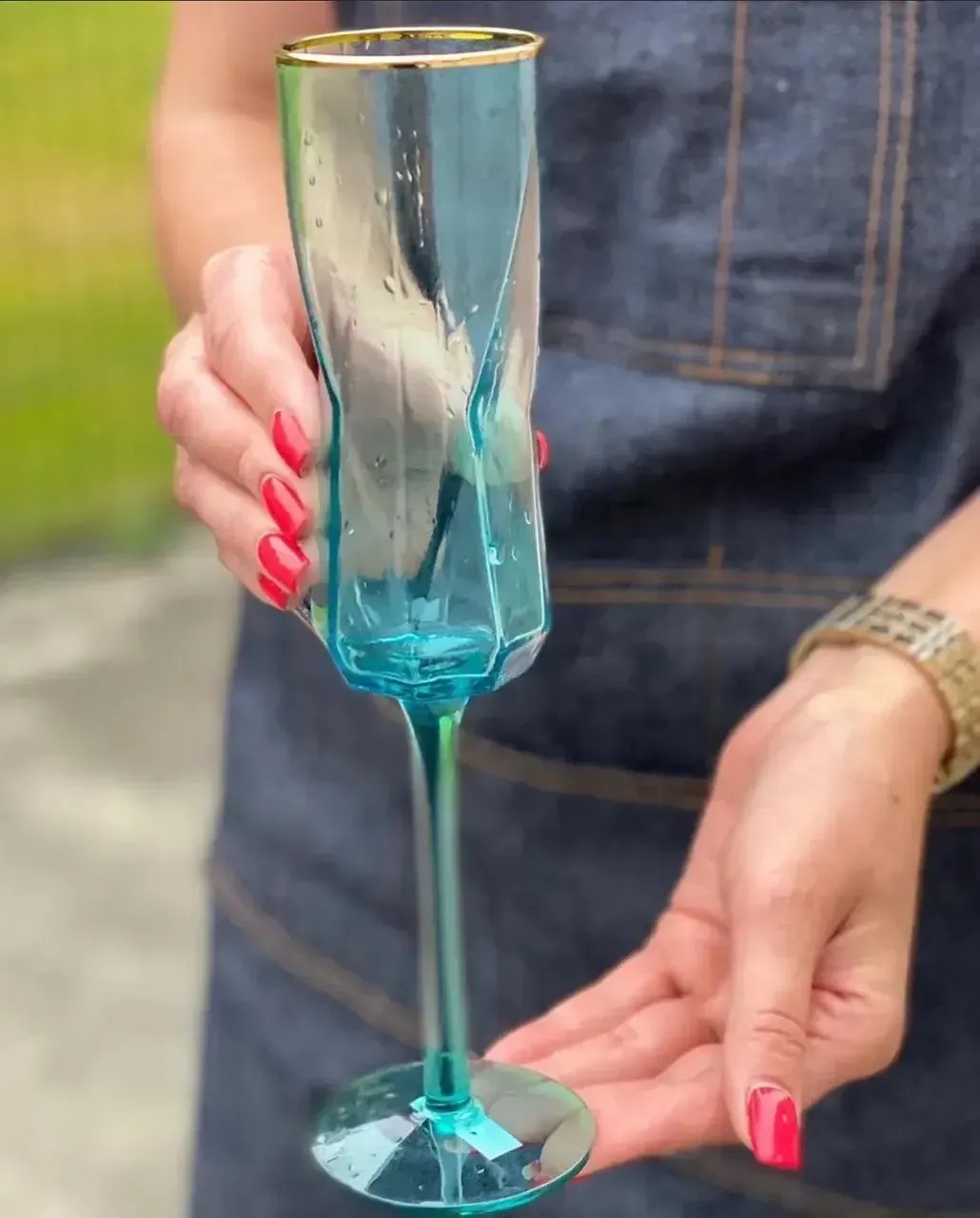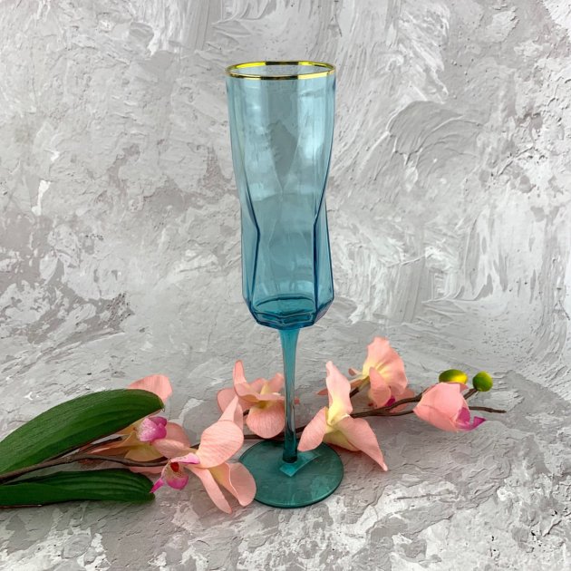 Фужер для шампанского цветной из стекла бирюзовый Olens Геометрия 200 мл с золотой каёмкой