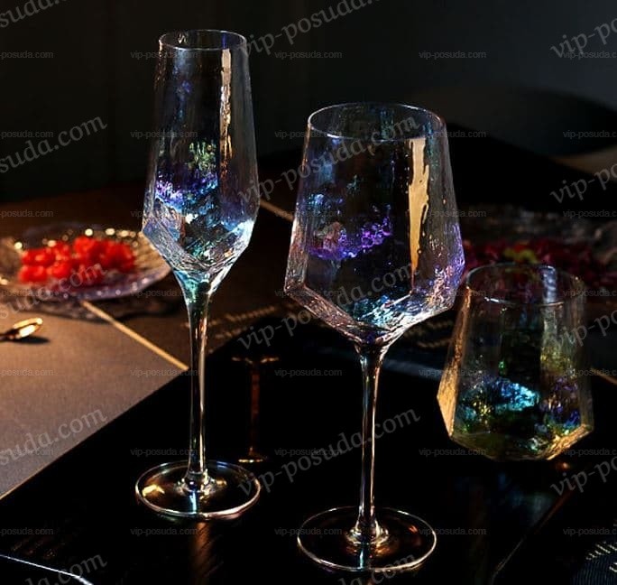 Бокалы жемчужного цвета с напыление хамелион, выполнен в скандинавском стиле ломаными гранямиИзготовлены ручным способом путем заливания в пресс-формы жидкого стекла. Благодаря толстым стенкам любимое вино сохранит свою прохладу и позволит в полной мере насладиться своим чарующим букетом вкуса. Бокалы не рекомендуется мыть в посудомоечной машине. Уважаемые покупатели, обращаем ваше внимание, что цветные бокалы отправляются исключительно после полной оплаты заказа!