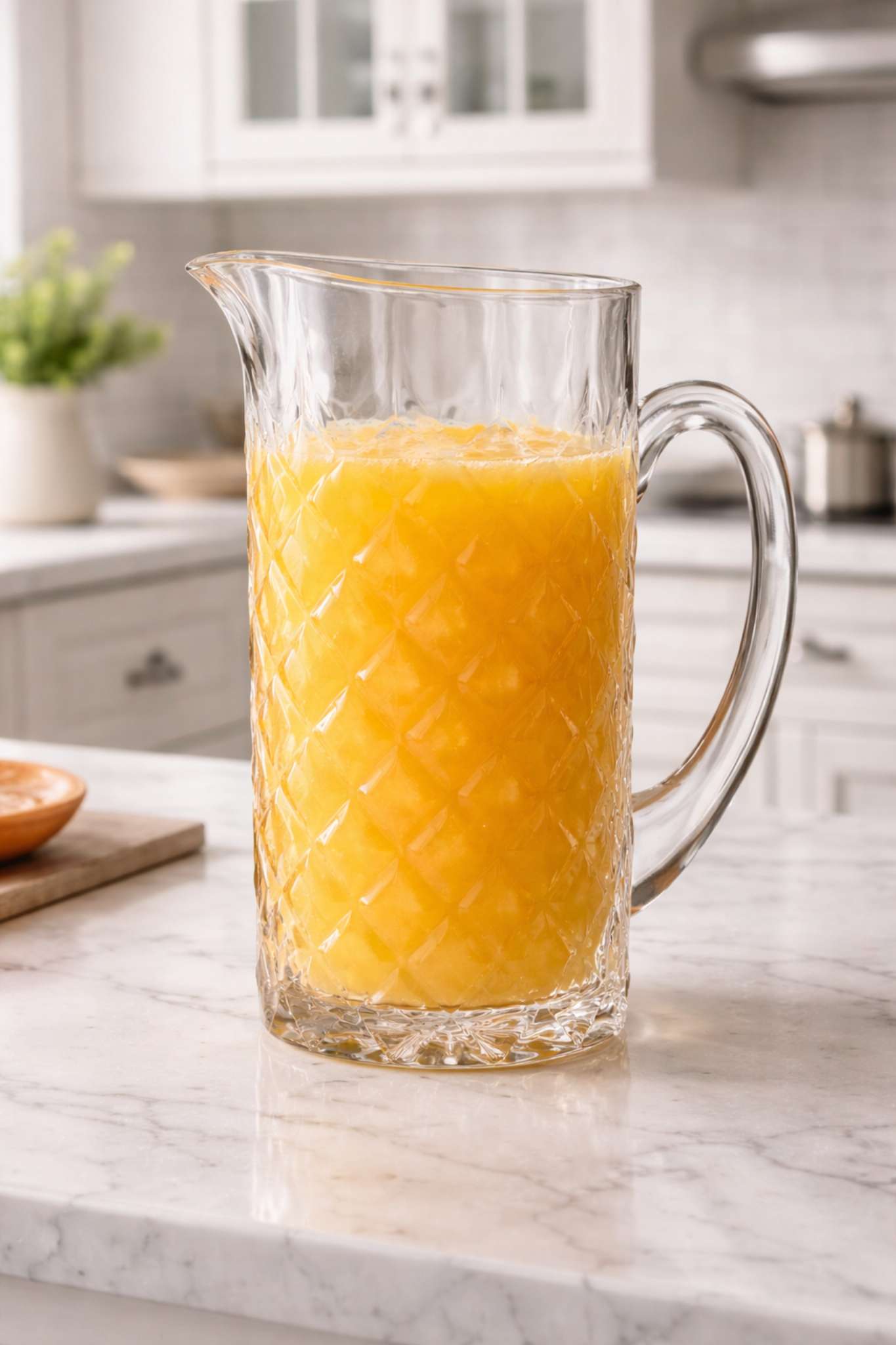 Глечик ідеально підходить для води, лимонадів, соків і холодних напоїв, прикрашаючи як повсякденний, так і святковий стіл. Екохрусталь вирізняється міцністю та стійкістю до щоденного використання, зберігаючи блиск і чіткість рельєфу з часом. Це стильний аксесуар сервірування, який підкреслює сучасний смак і увагу до деталей.
