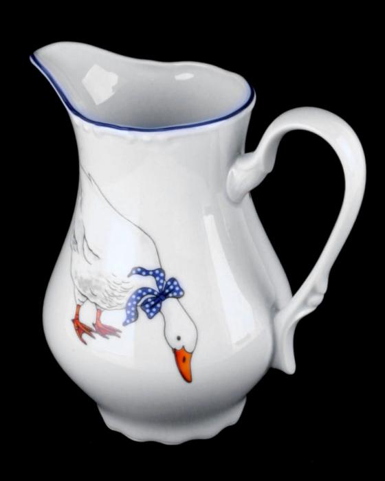 Глек порцеляновий білий з малюнком Thun Constance Гуси 850 мл з синім кантом