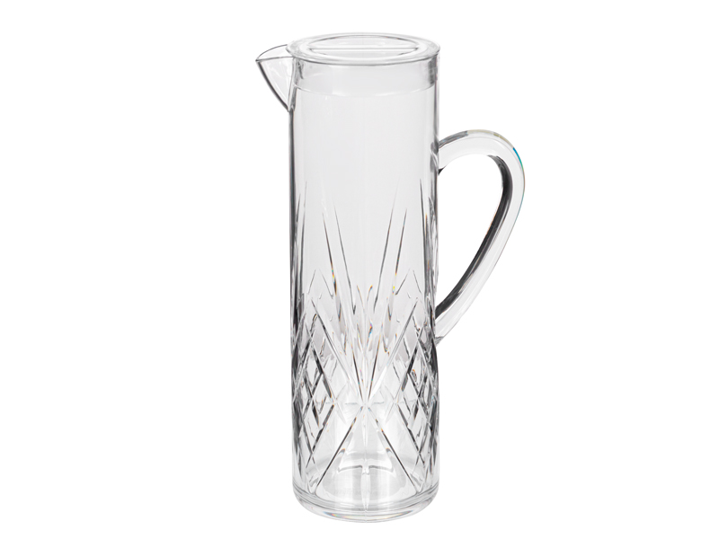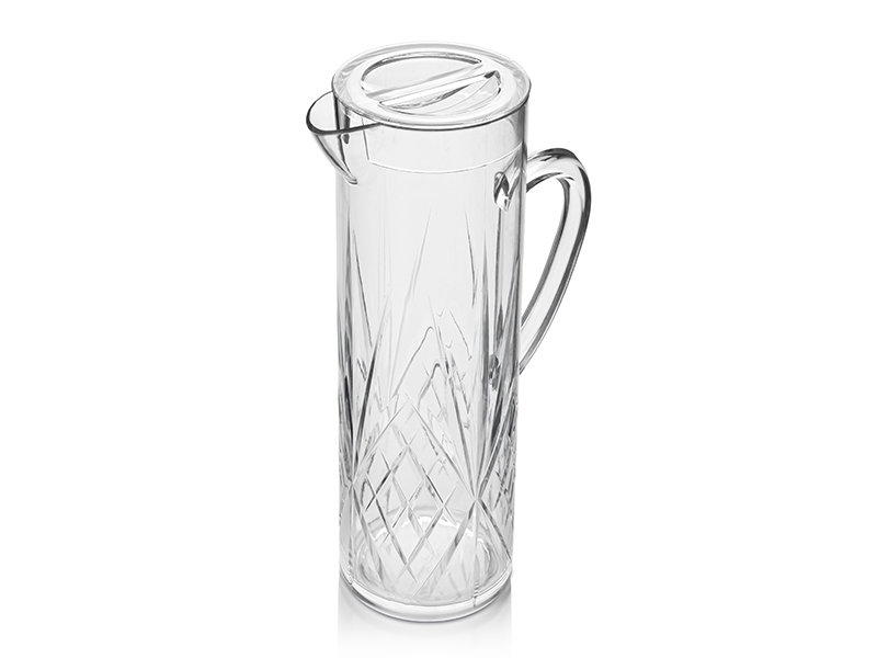 Глек акриловий прозорий "Крижина" об’ємом 1,5 літра — це практичний посуд для подачі води, соку, компоту чи інших напоїв. Виготовлений із міцного акрилу, безпечного для харчових продуктів. Прозорі стінки з геометричним візерунком візуально нагадують скло або кришталь.