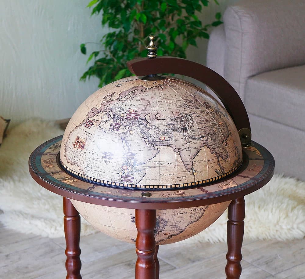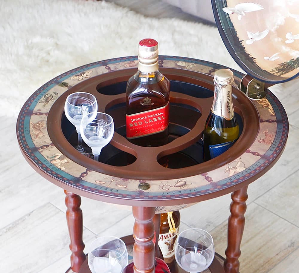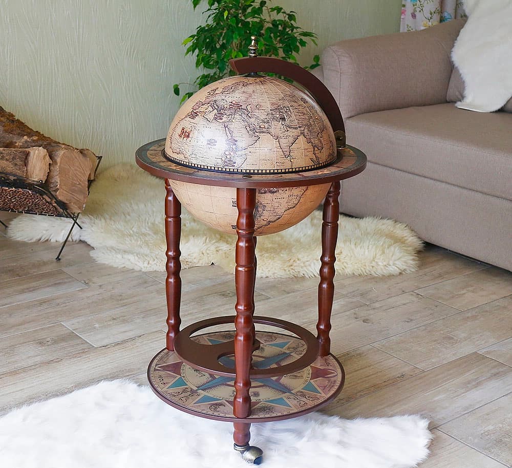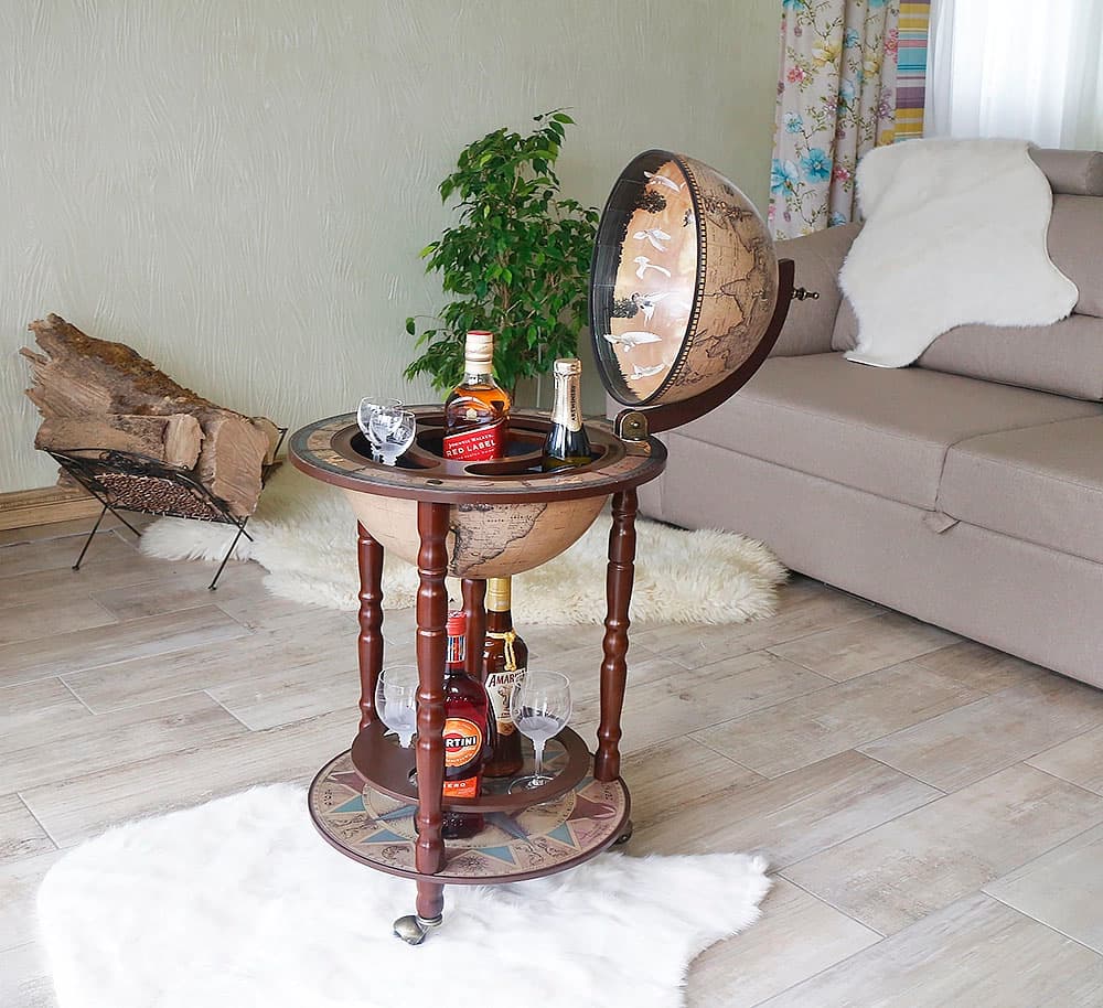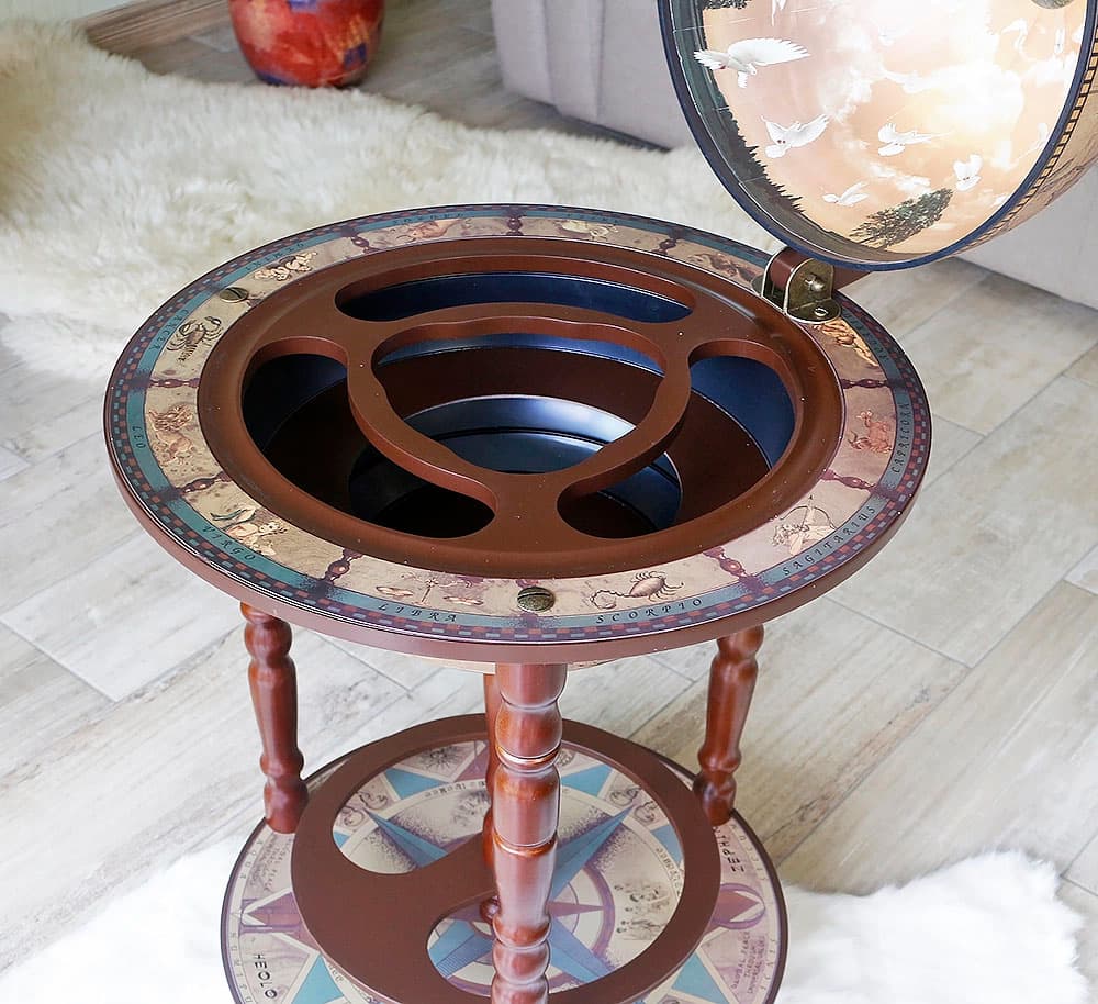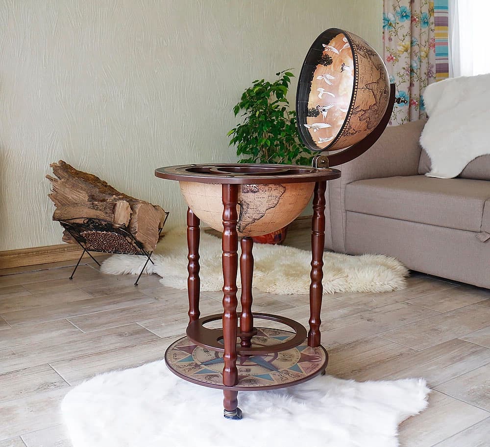 Напольный бар малого размера поместиться даже в самой маленькой квартире или офисе. Бар глобус Зодиак 33001N – шикарный презент уважаемому человеку. Также этот сувенир станет подходящим подарком коллектива начальнику или директору.