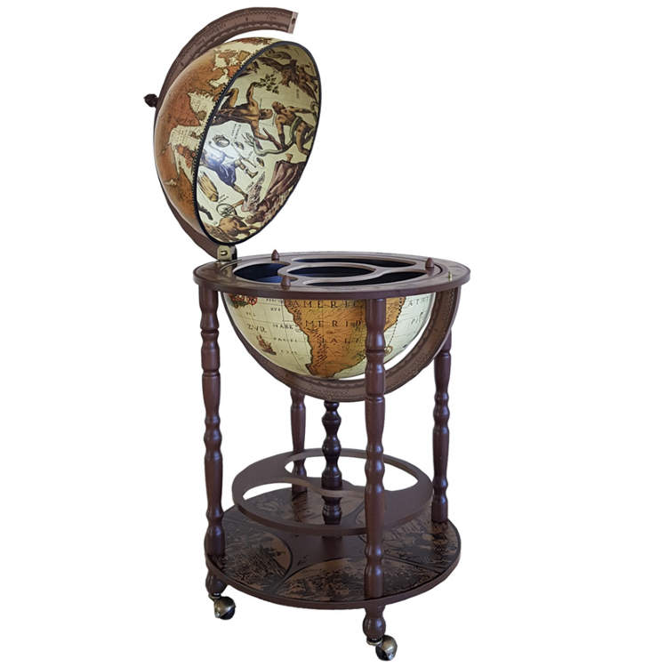 У сфері містяться пляшки заввишки 30 см (0,5 л). Ви зможете зберігати в цьому глобусі 3-4 напої залежно від опуклості самих пляшок.