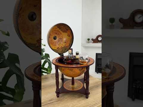 Сфера з оформленням у вигляді старовинної карти створює атмосферу подорожей і відкриттів, а продумана конструкція дозволяє впорядковано розмістити пляшки та аксесуари. Виріб гармонійно вписується у вітальню, кабінет або зону відпочинку.