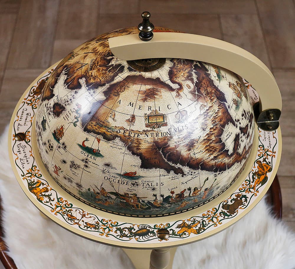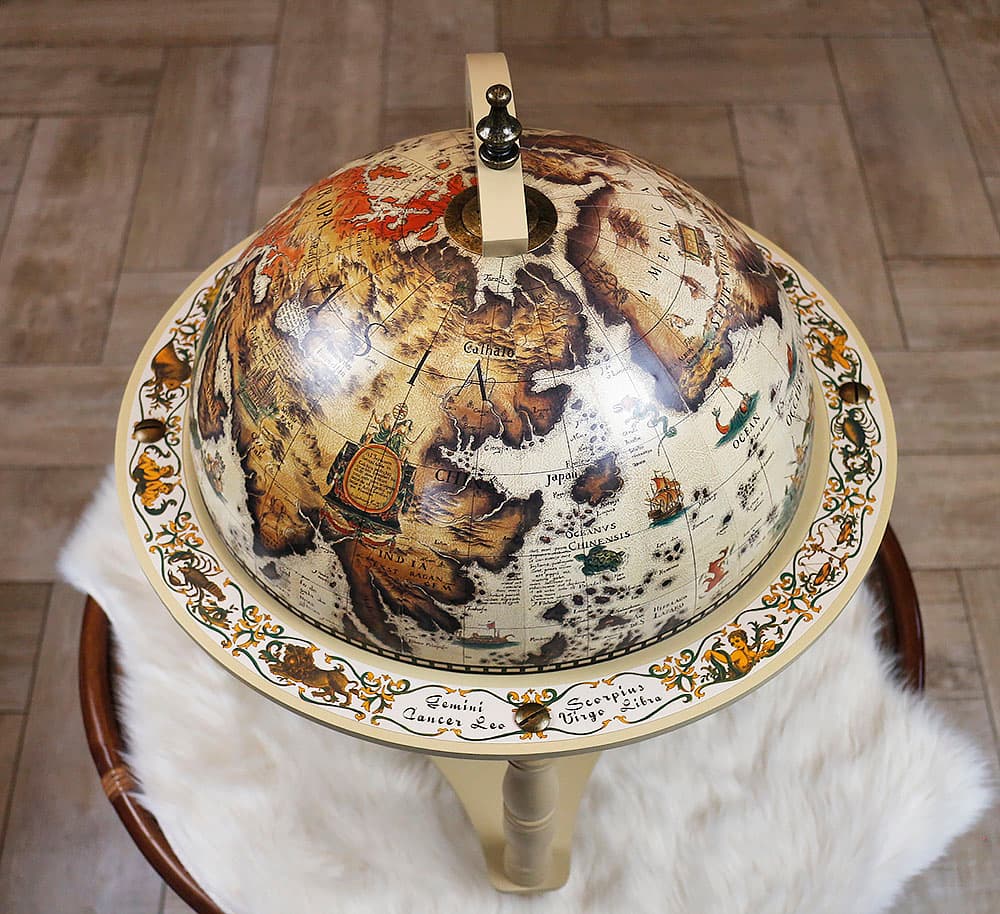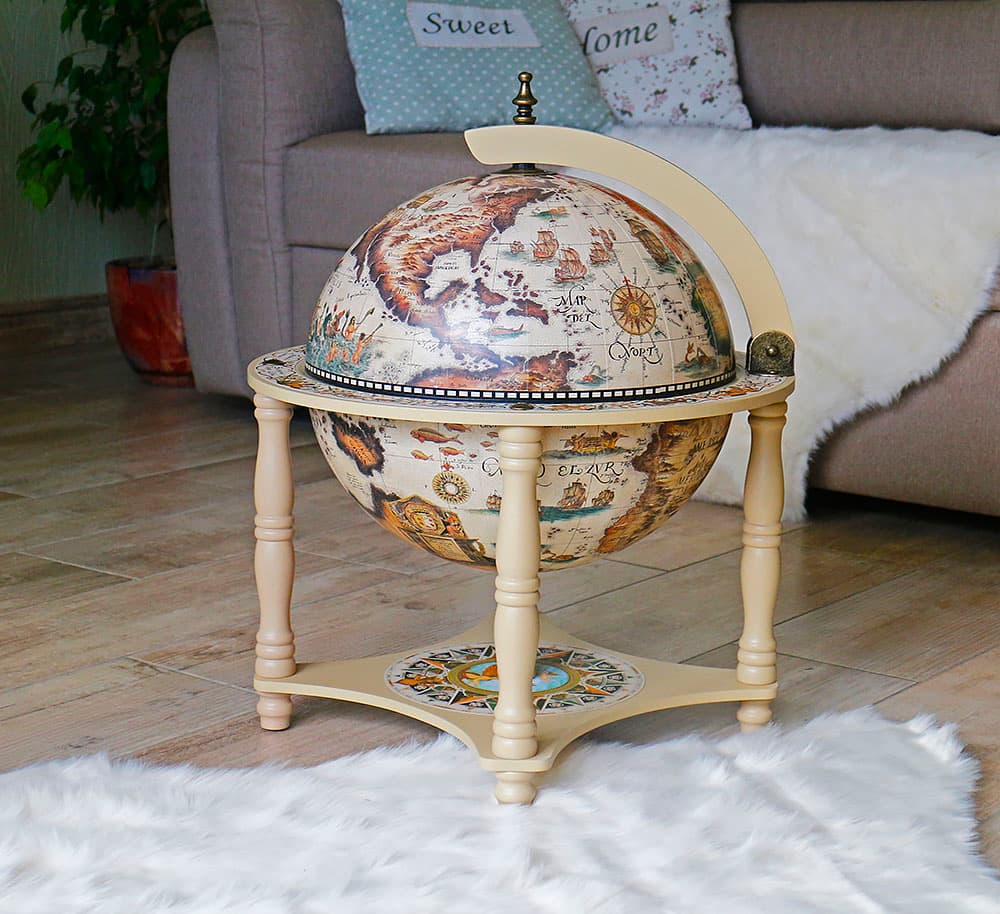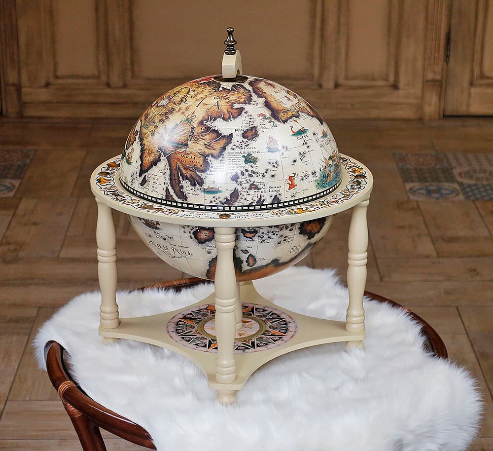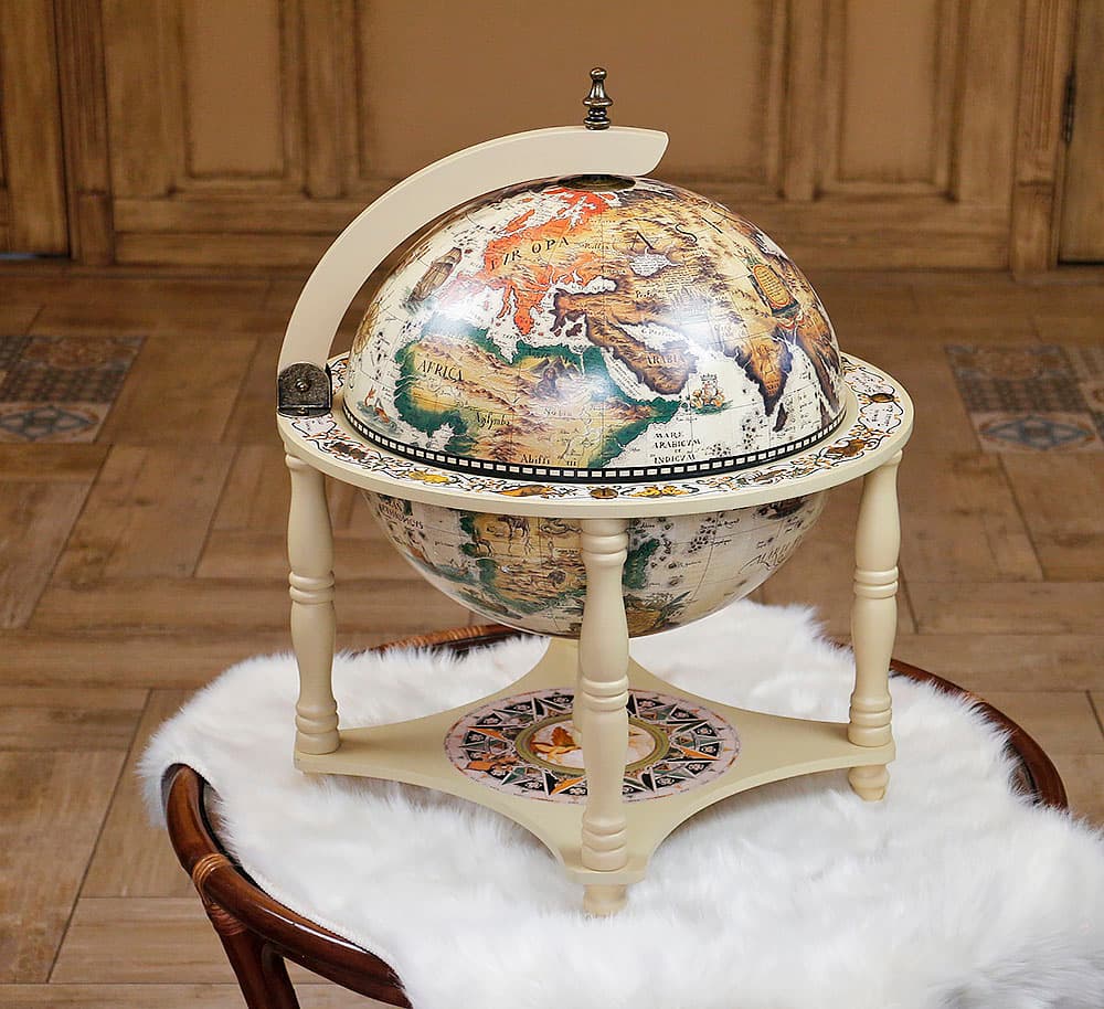 Глобус-бар 4 ножки 33см настольный слоновая кость