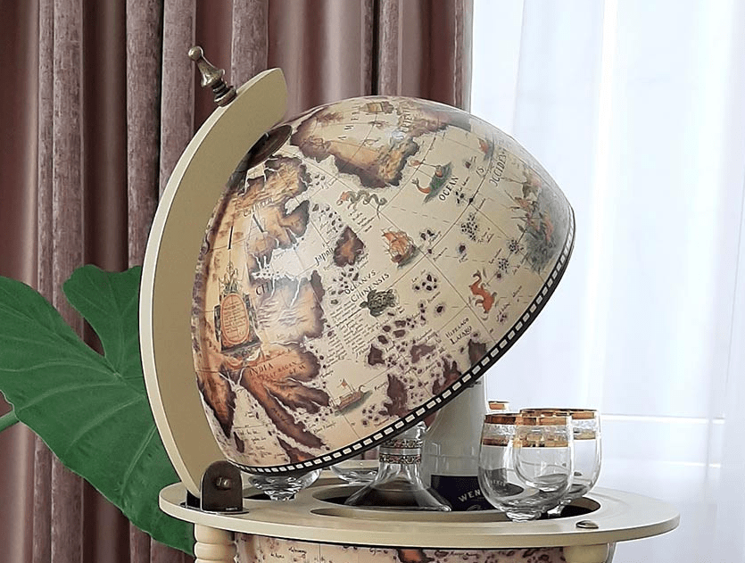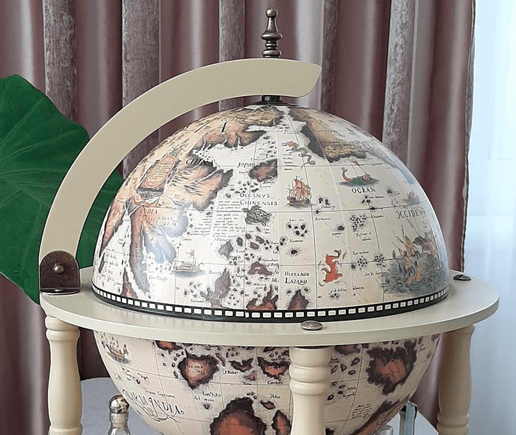 Глобус бар цвета красного дерева выглядит потрясающе в интерьере. Но он не только привлекает внимание, ведь бар глобус это в первую очередь функциональное изделие. В нем можно расположить много бутылок и фужеров. Если Вы ищете качественный и презентабельный подарок, то глобус бар это правильный выбор.