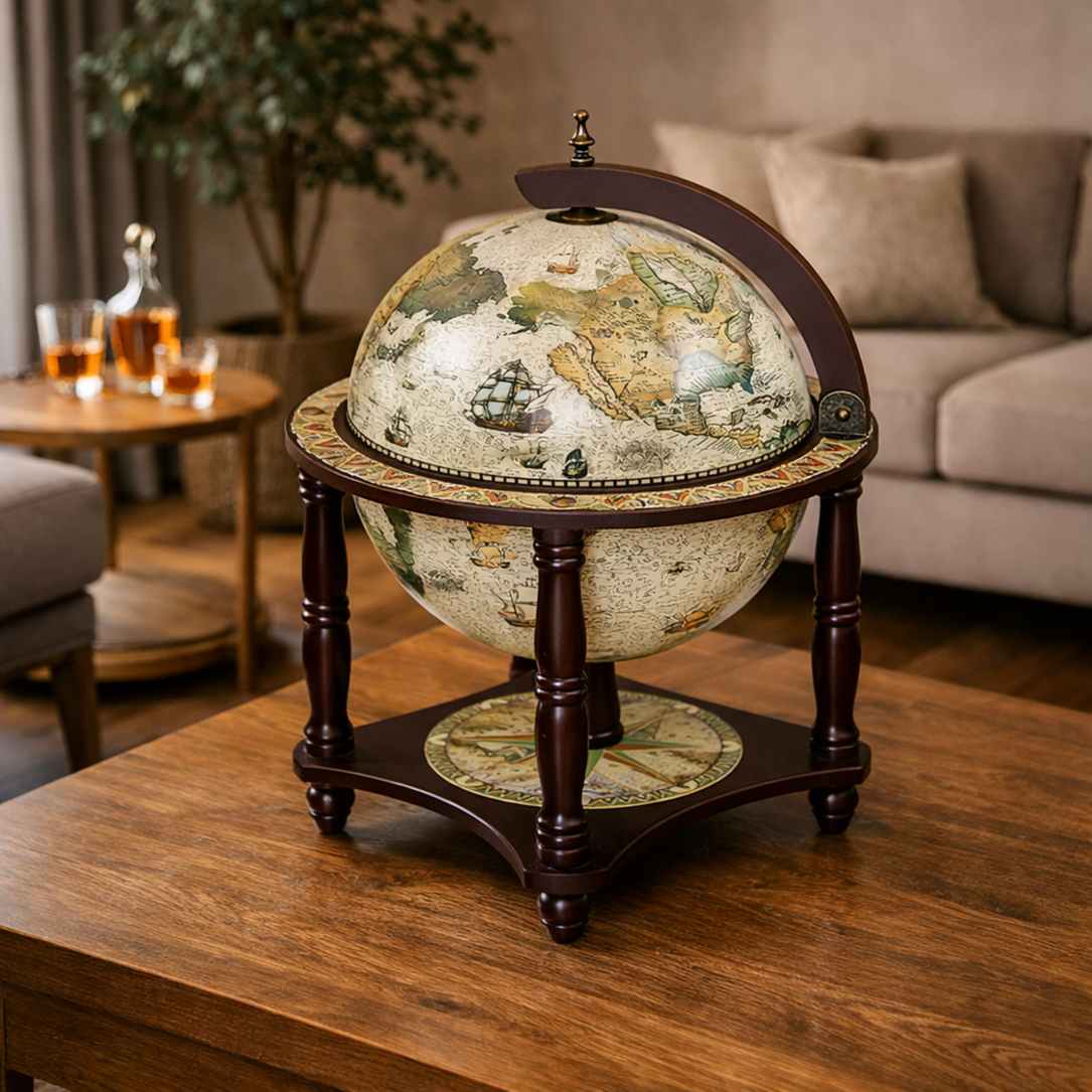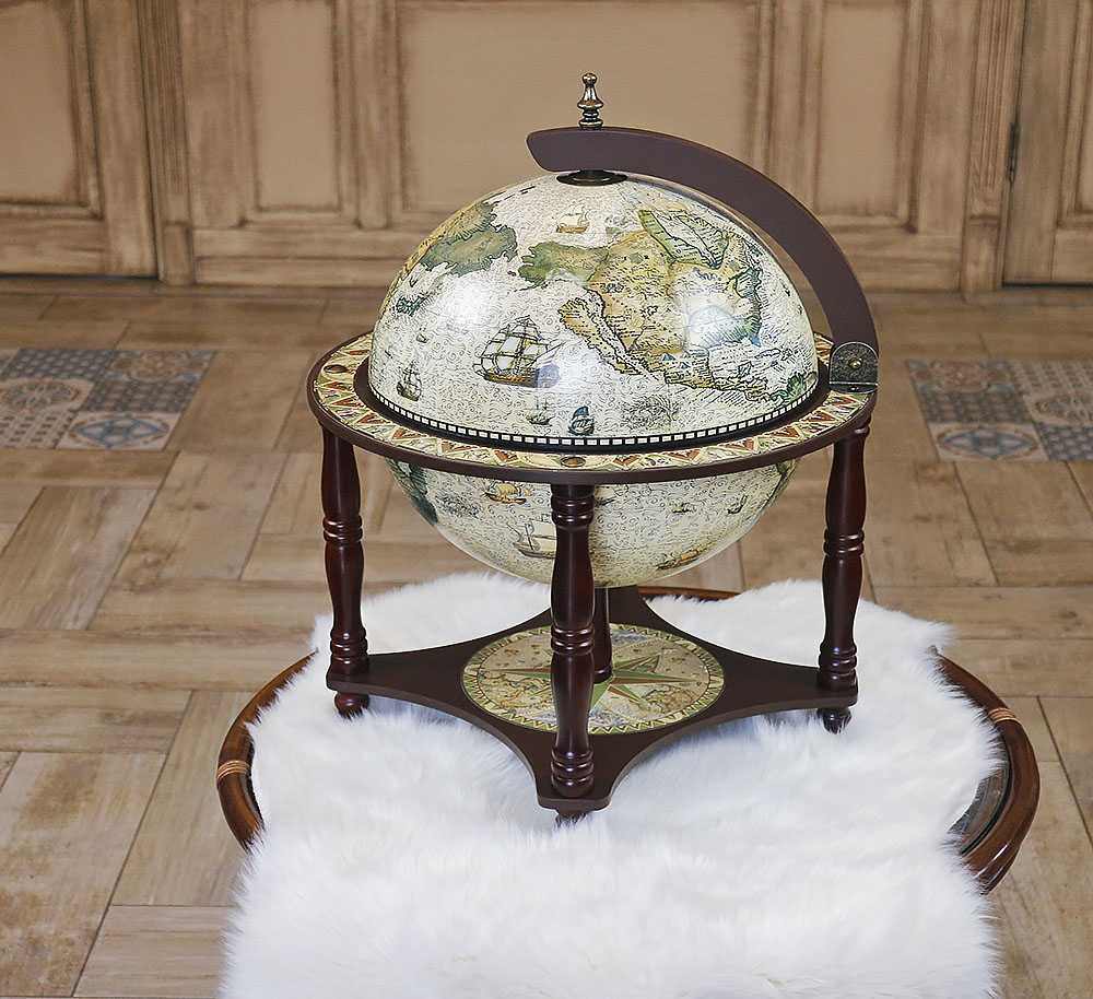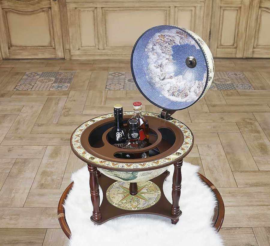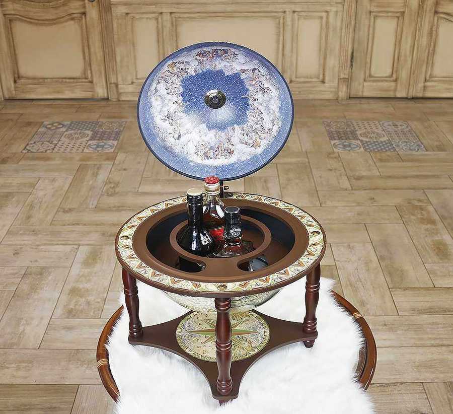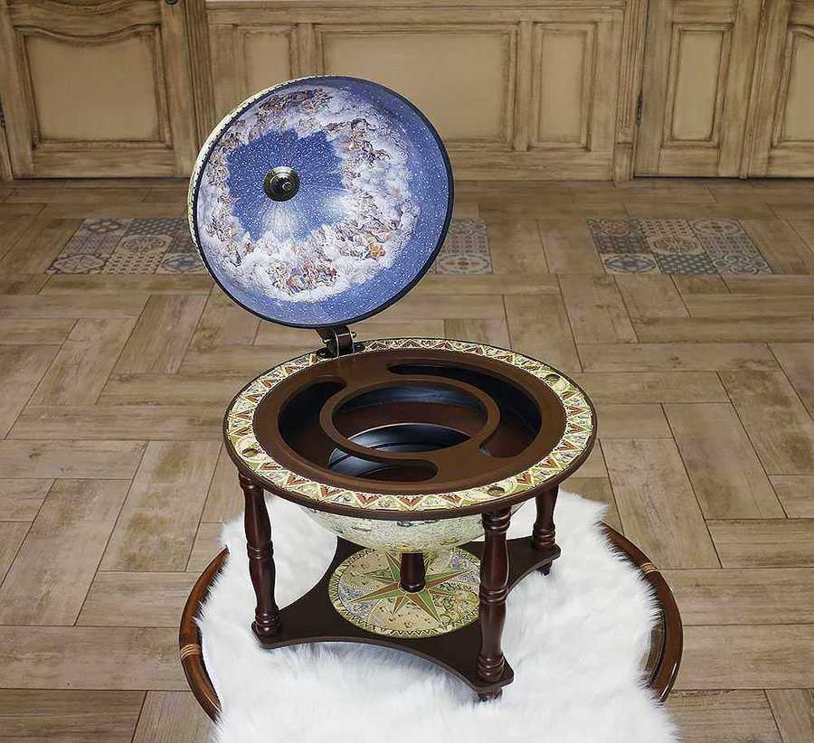Этот глобус-бар станет стильным элементом интерьера, создавая атмосферу уюта, респектабельности и комфорта.