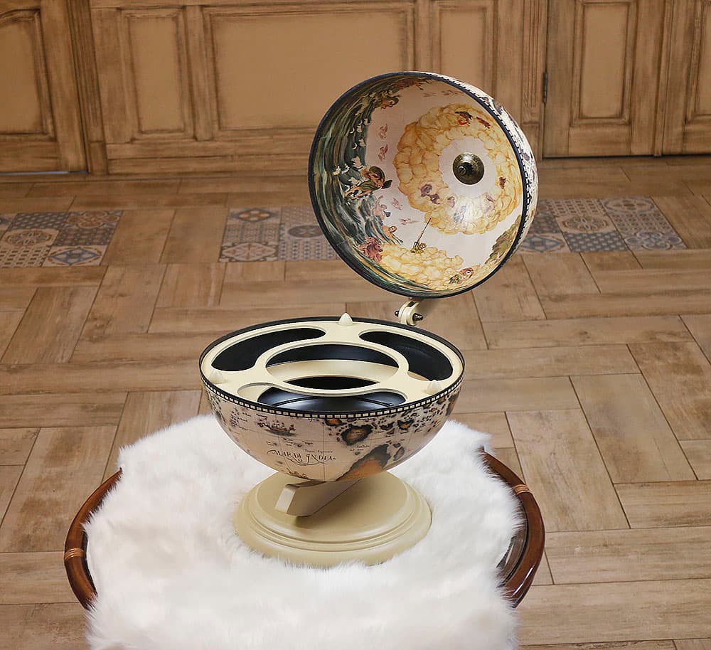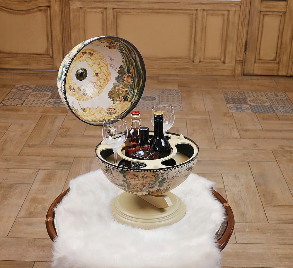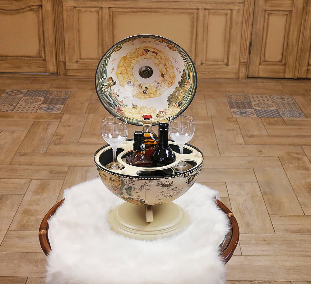 Глобус бар молочного кольору настільний варіант, ідеальне рішення для зберігання алкоголю та келихів. Глобус бар незамінний, якщо мова йде про прийом гостей вдома. Ця може підходить на пожежу жінці Боссу. Такий подарунок дуже порадує іменинника.