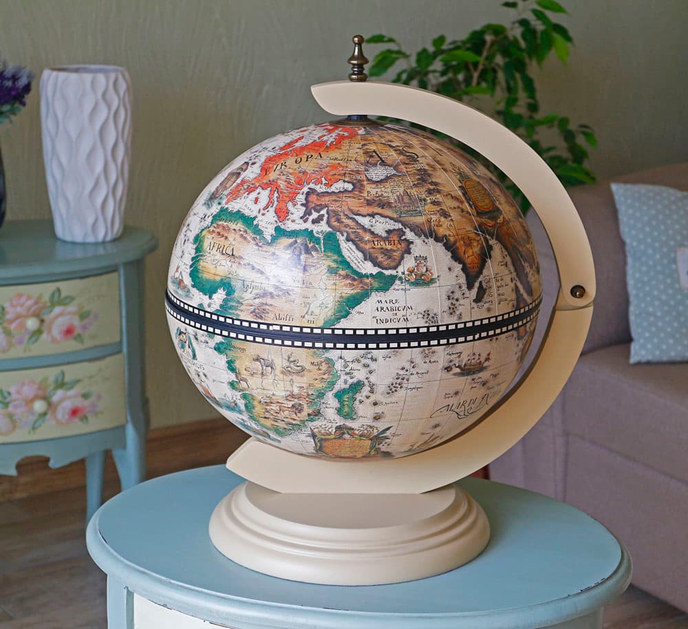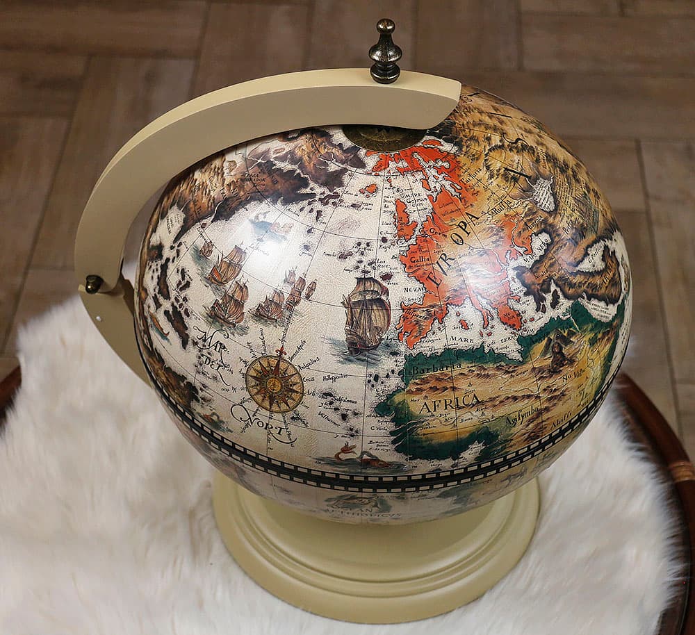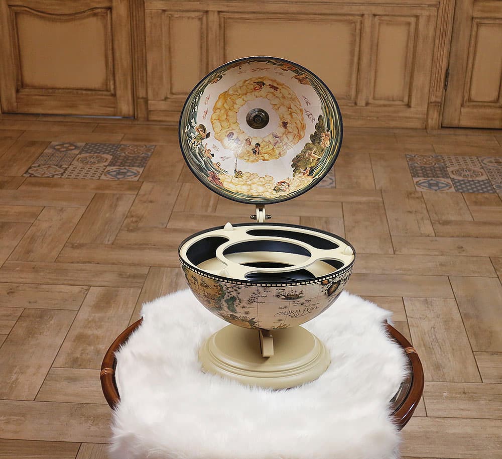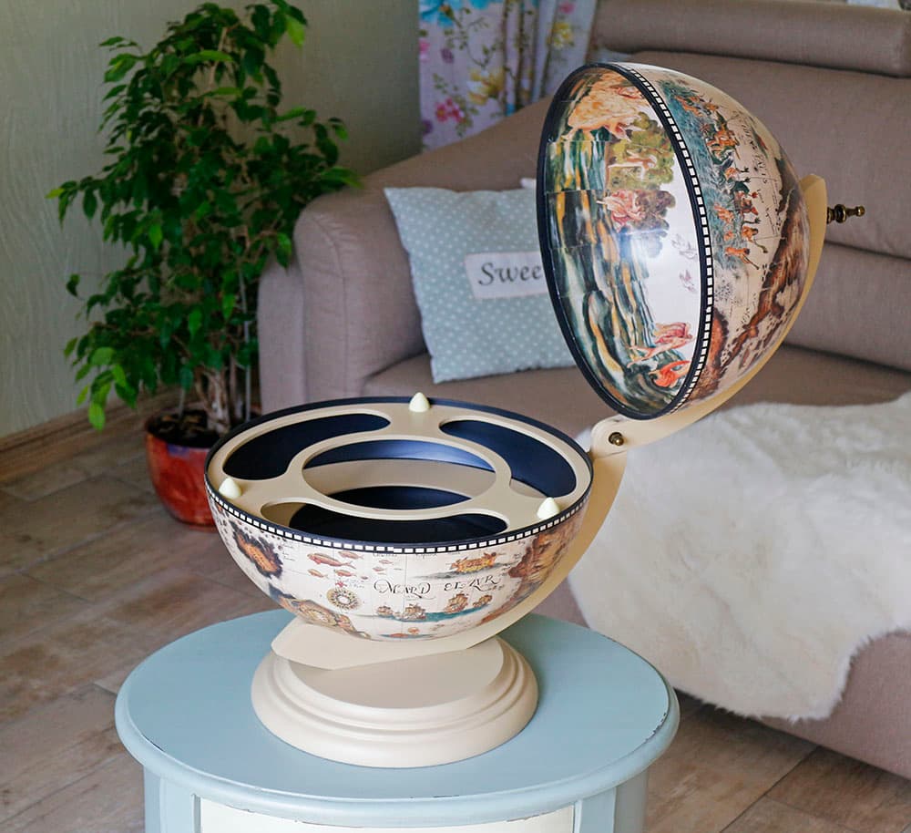 Глобус бар молочного кольору настільний варіант, ідеальне рішення для зберігання алкоголю та келихів. Глобус бар незамінний, якщо мова йде про прийом гостей вдома. Ця може підходить на пожежу жінці Боссу. Такий подарунок дуже порадує іменинника.