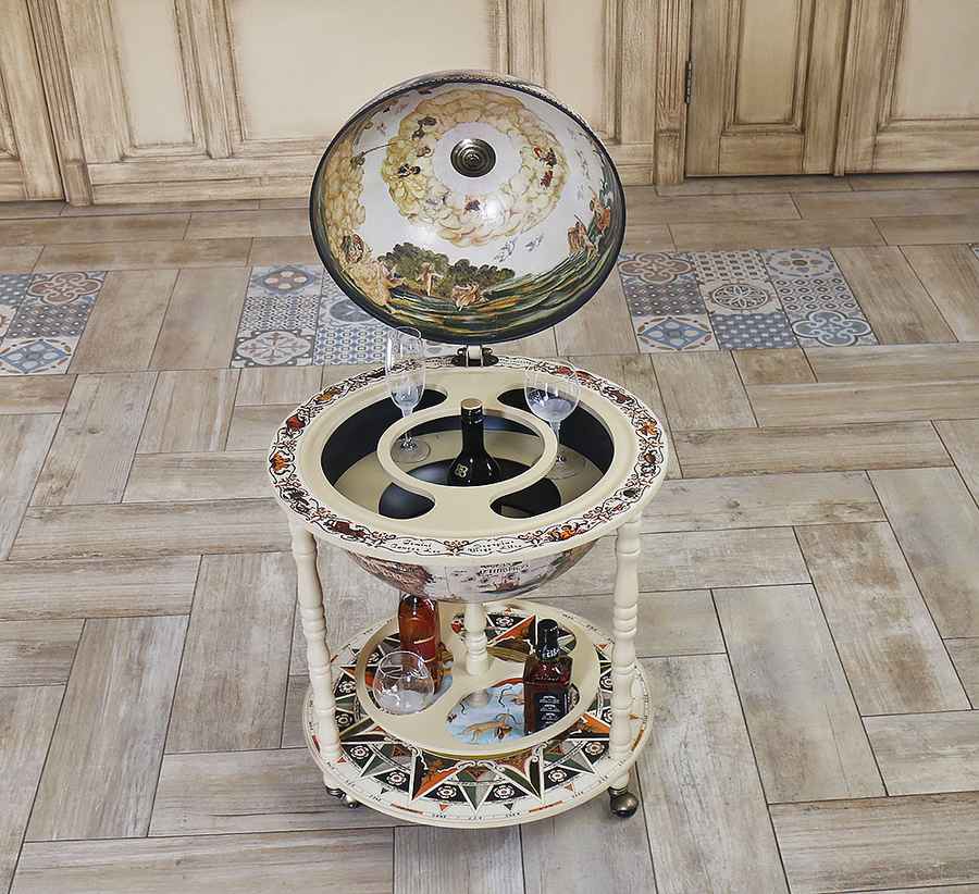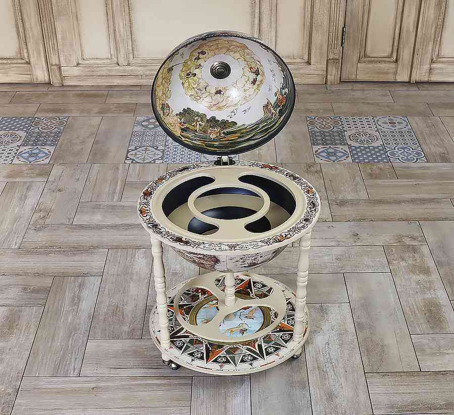 Цей підлоговий бар із глобусом створений для тих, хто цінує естетику, порядок та комфорт у зберіганні напоїв. Він поєднує в собі вишуканий зовнішній вигляд і продуману організацію простору.