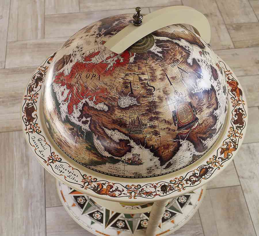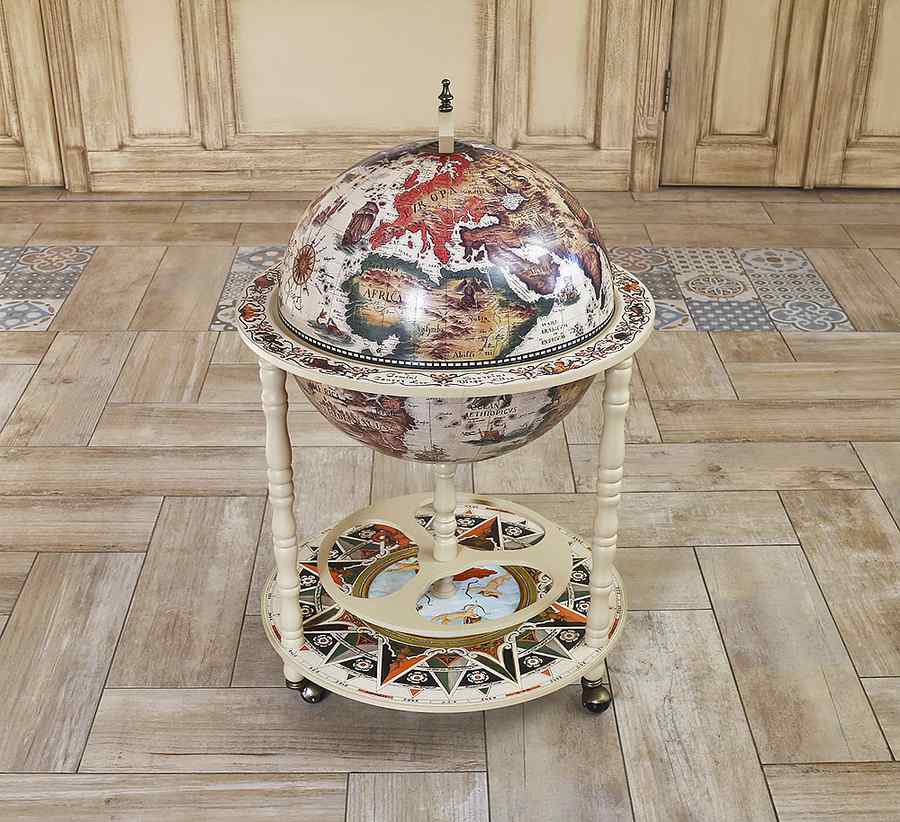 Глобус-бар підлоговий для алкоголю з картою світу, колір слонова кістка, сфера 45 см