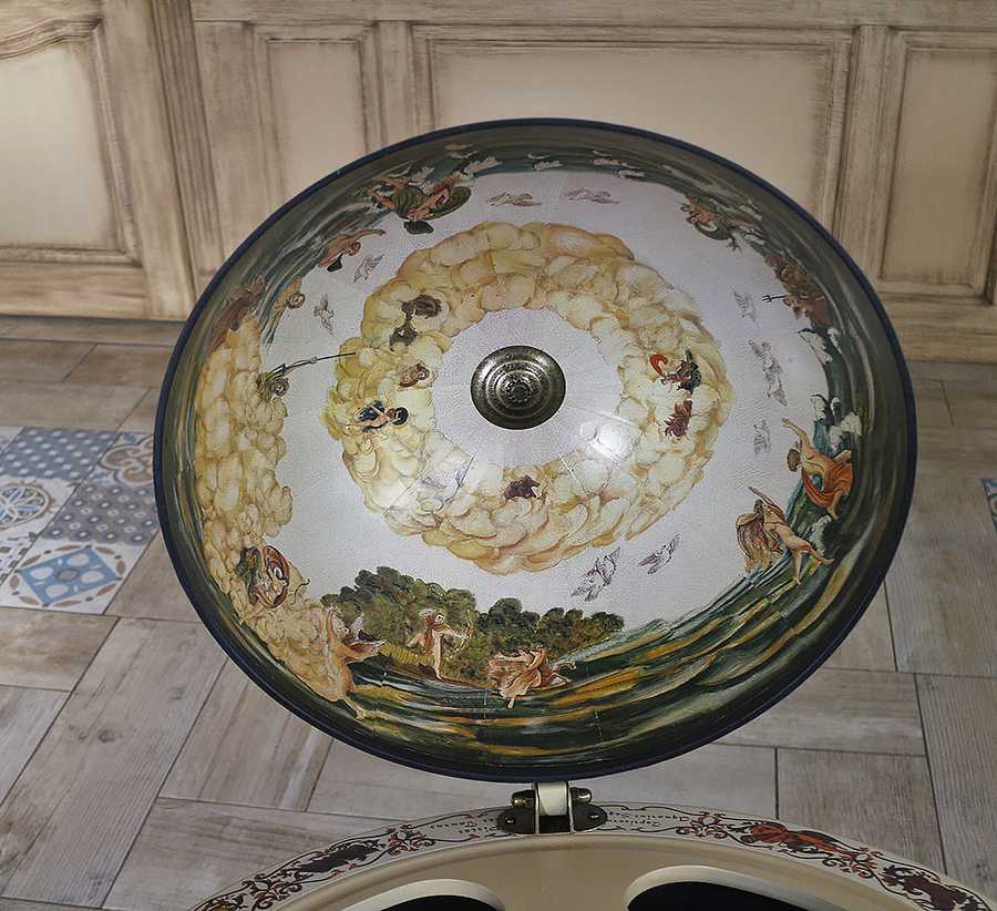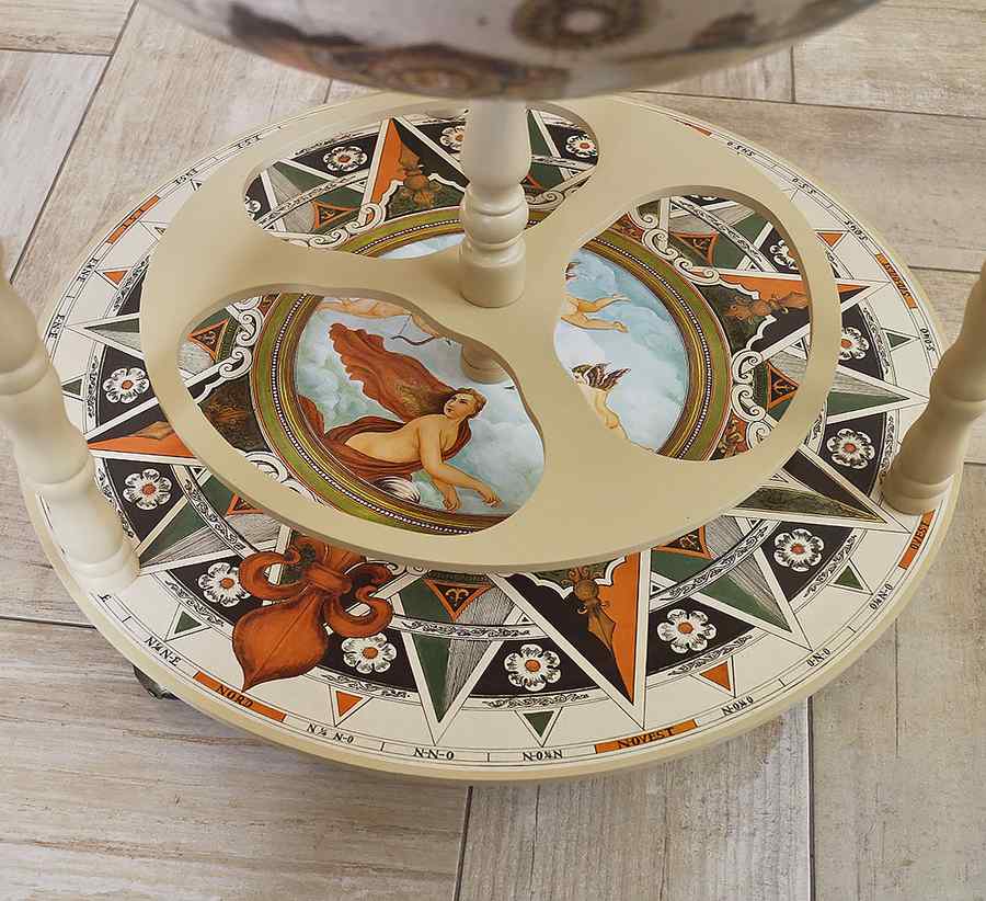 Сфера: Об’ємна поверхня зі старовинною картою світу додає інтер’єру історичного та інтелектуального характеру.