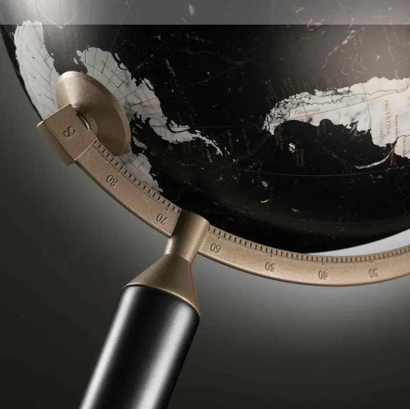 Zoffoli — це 100% італійське виробництво. Глобус виготовлено з натурального дерева з оздобленням під шпон, що гарантує міцність і довговічність. Чорний корпус і стримана кольорова гама гармонійно поєднуються з сучасними меблями в стилі лофт, сканді або мінімалізм.