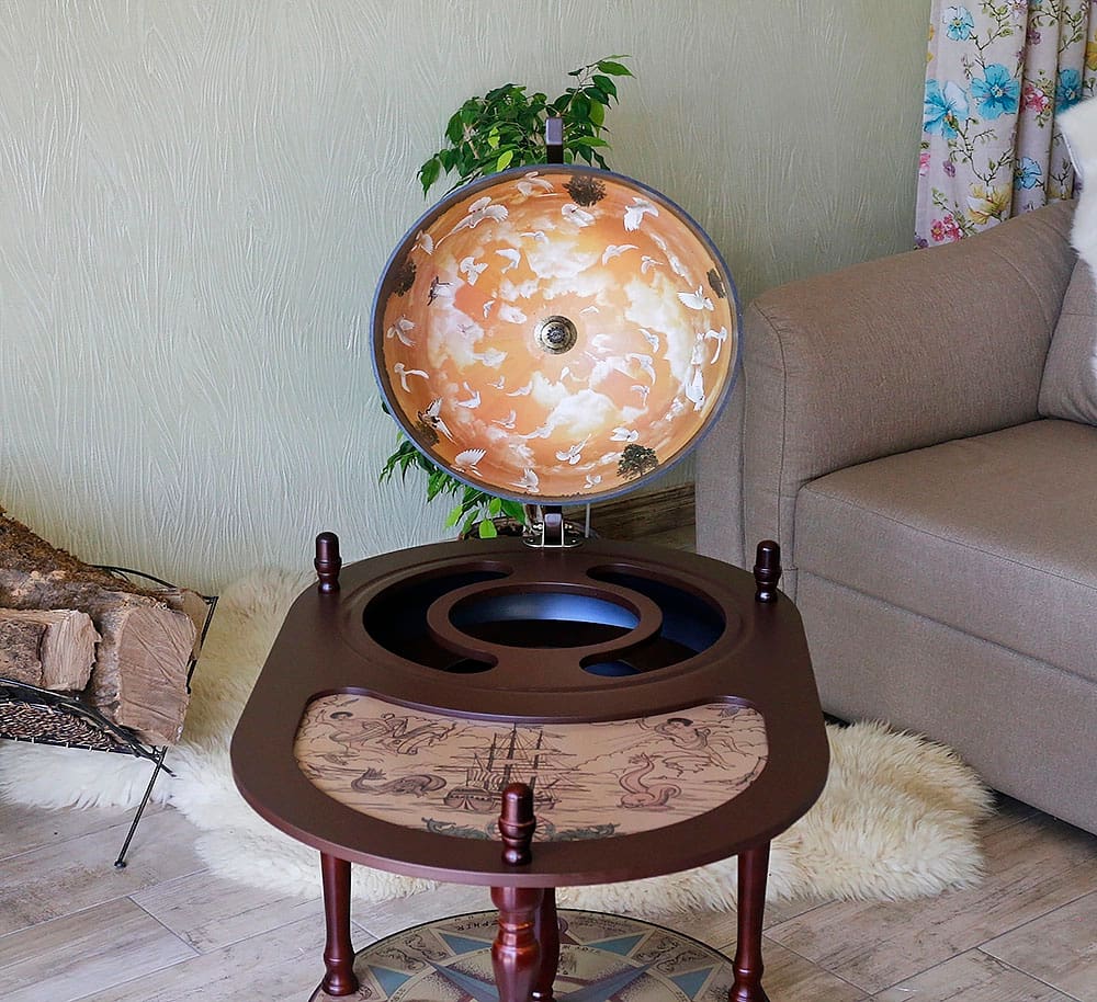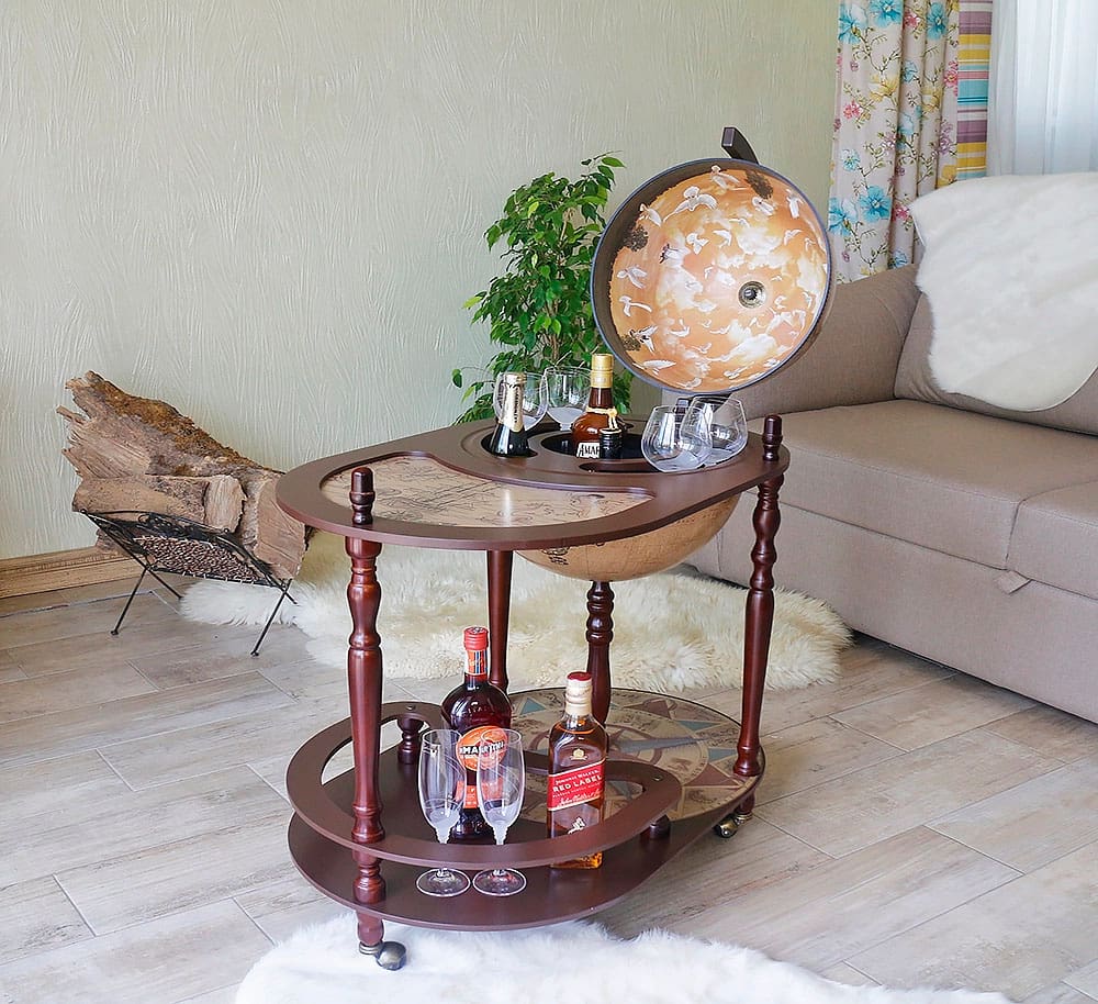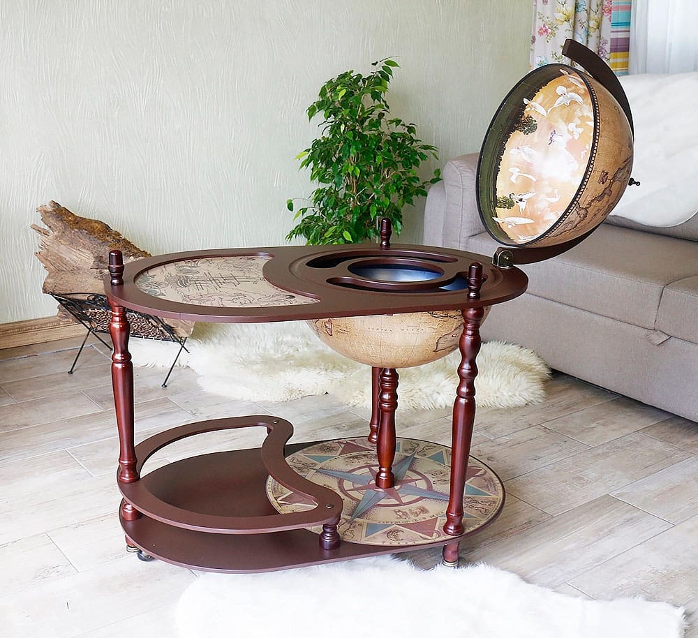 БрендGrandioso Країна виробництваКитай МатеріалДерево Висота точна20 см Тип глобус-баруГлобус-бар настільний