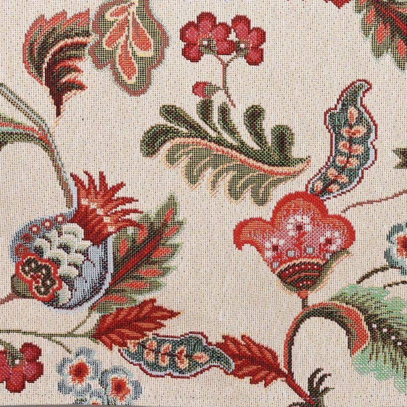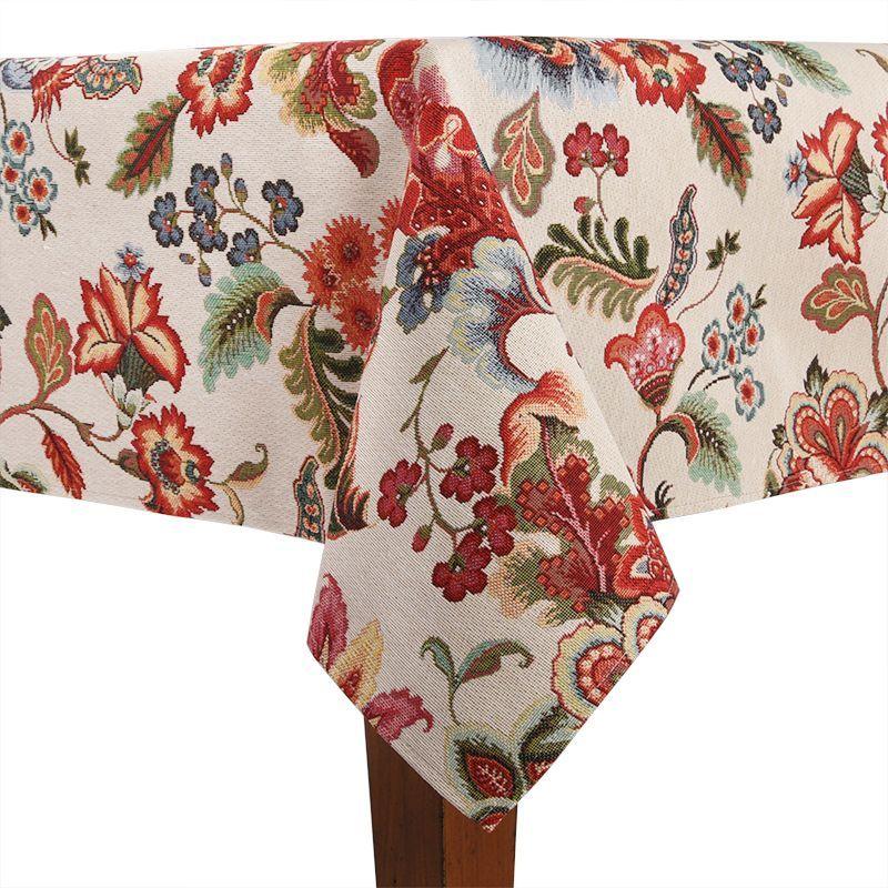 Премиум скатерть с красочным рисунком по краям внесет весеннее настроение и добавит уюта помещению. Скатерть изготовлена из качественного премиального гобелена. В качестве рисунка выбран растительный сюжет, на котором можно увидеть переплетение трав, цветов и различных растений.