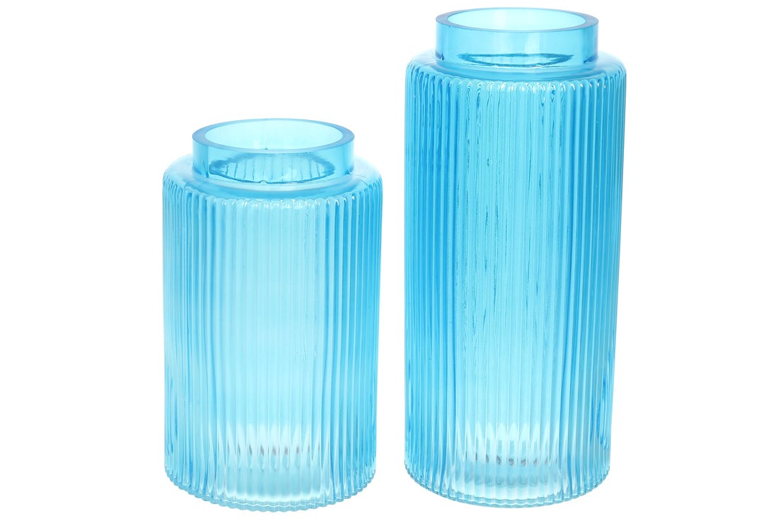 Голубая ваза для цветов стеклянная Лазурь 20 см