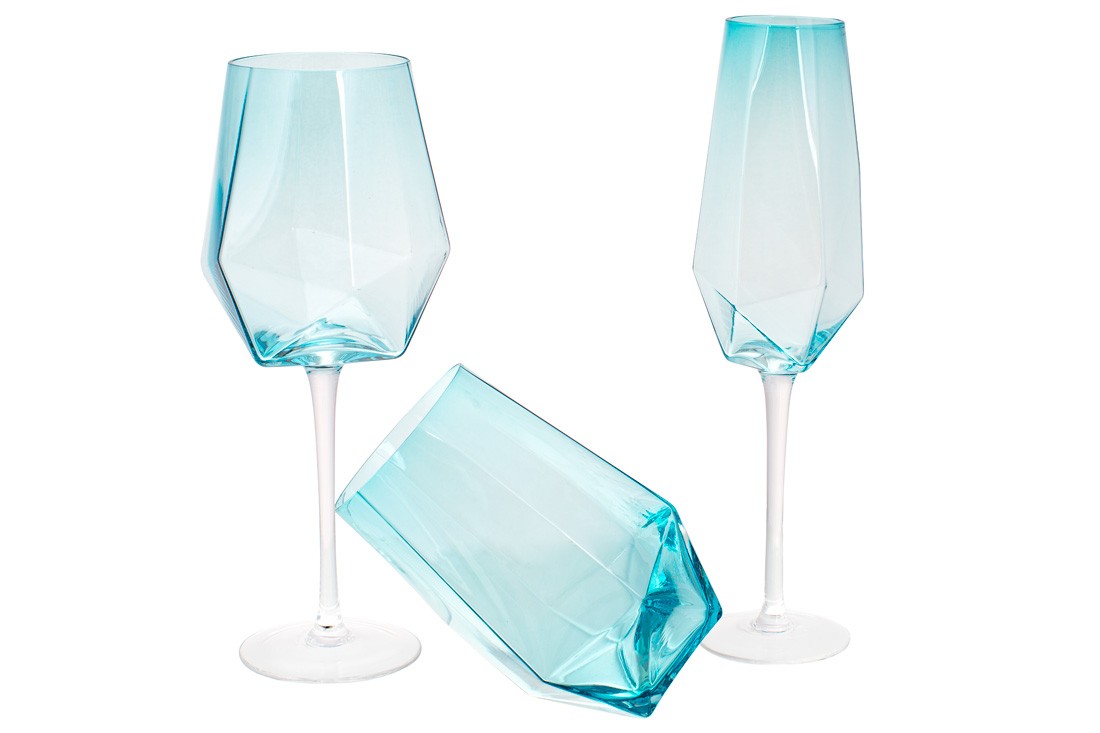 Келихи для шампанського (шампанки) з оригінальною формою колби, незвичайним кольором скла (крижаний блакитний) та елегантною тонкою ніжкою - для святкового та повсякденного застілля та гарного настрою! Для будь-якого стилю сервірування.