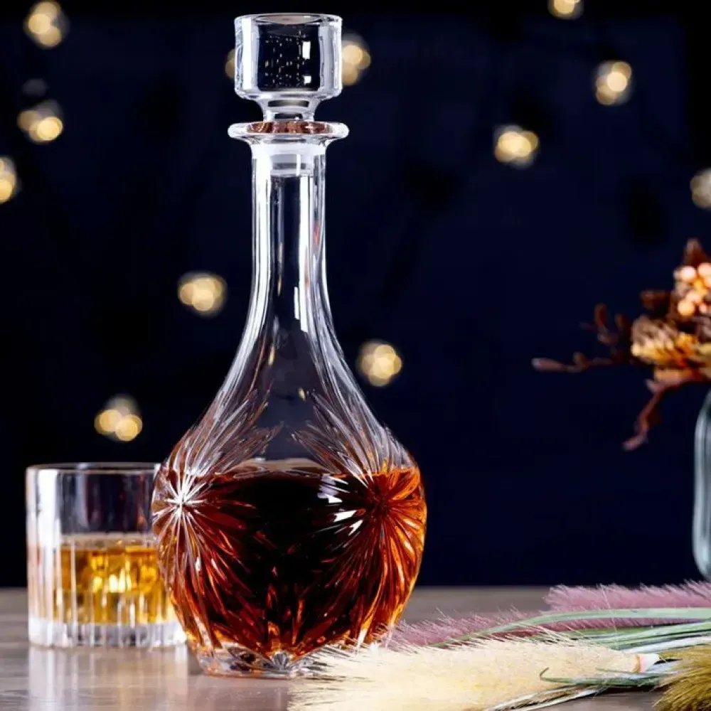 Особливе місце займає графин для віскі на 850 мл. Його стримані лінії та більш компактна форма підкреслюють чоловічий характер напою. Такий аксесуар вигідно підкреслить колір і прозорість віскі, бренді чи коньяку, створюючи атмосферу справжнього дегустаційного вечора.