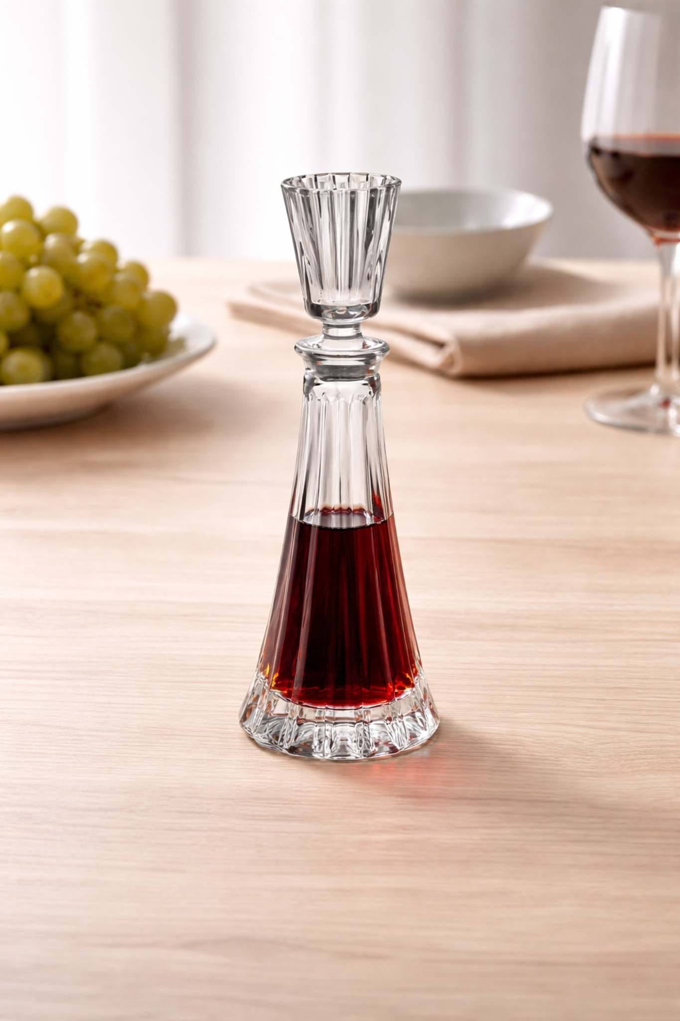 Крышка, совмещённая с чаркой, добавляет графину практичности, позволяя не только хранить напиток, но и использовать её для сервировки. Он прекрасно подойдёт для крепких алкогольных напитков – от ликёра до коньяка.