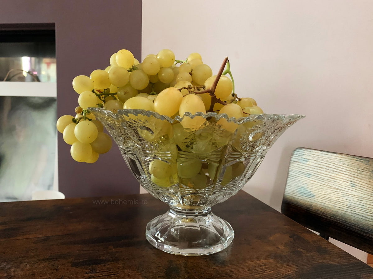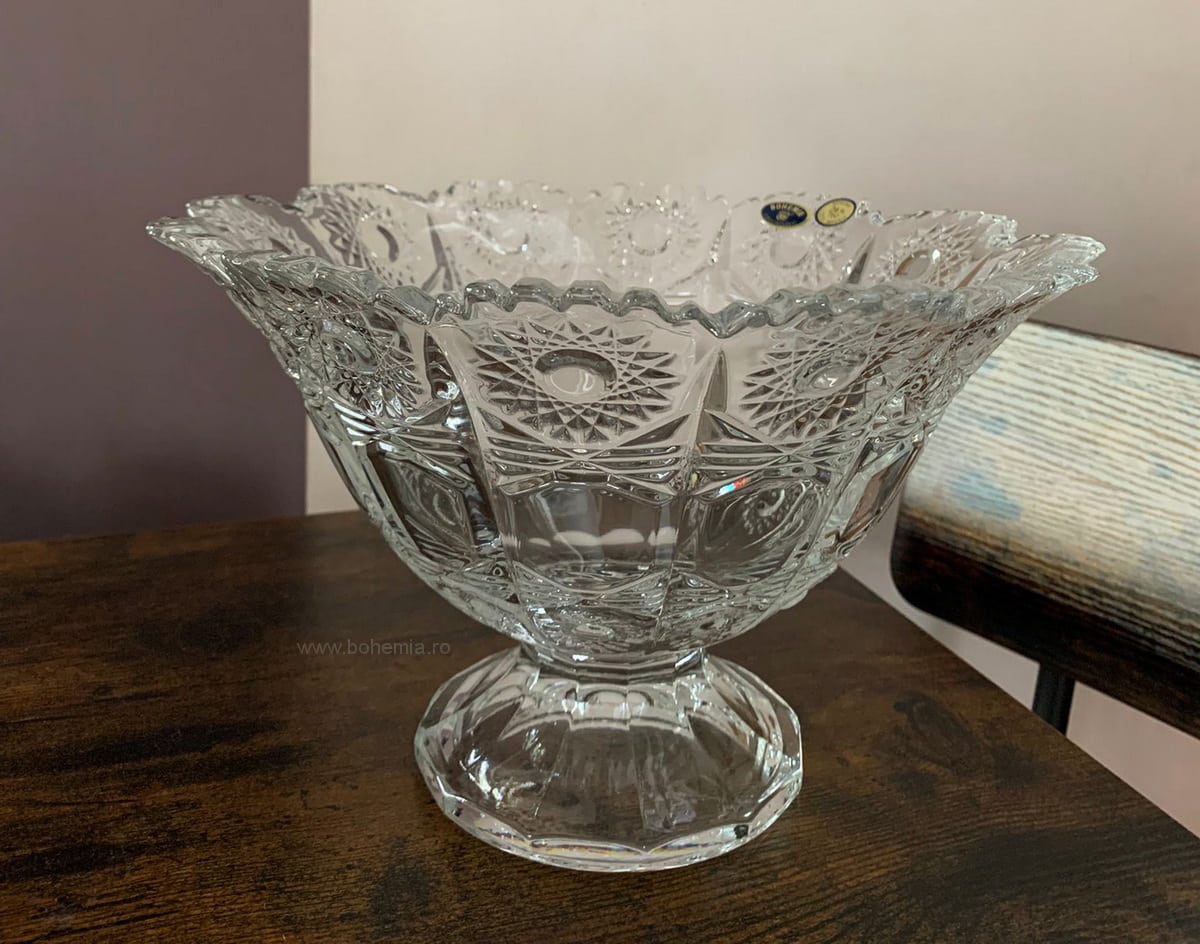 Эта ваза для фруктов изготовлена из настоящего богемского хрусталя с содержанием PbO 24%.