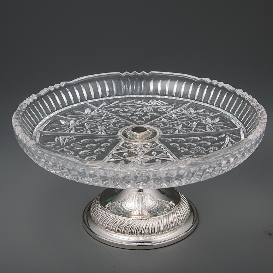 Хрустальная конфетница на серебряной ножке 22 см