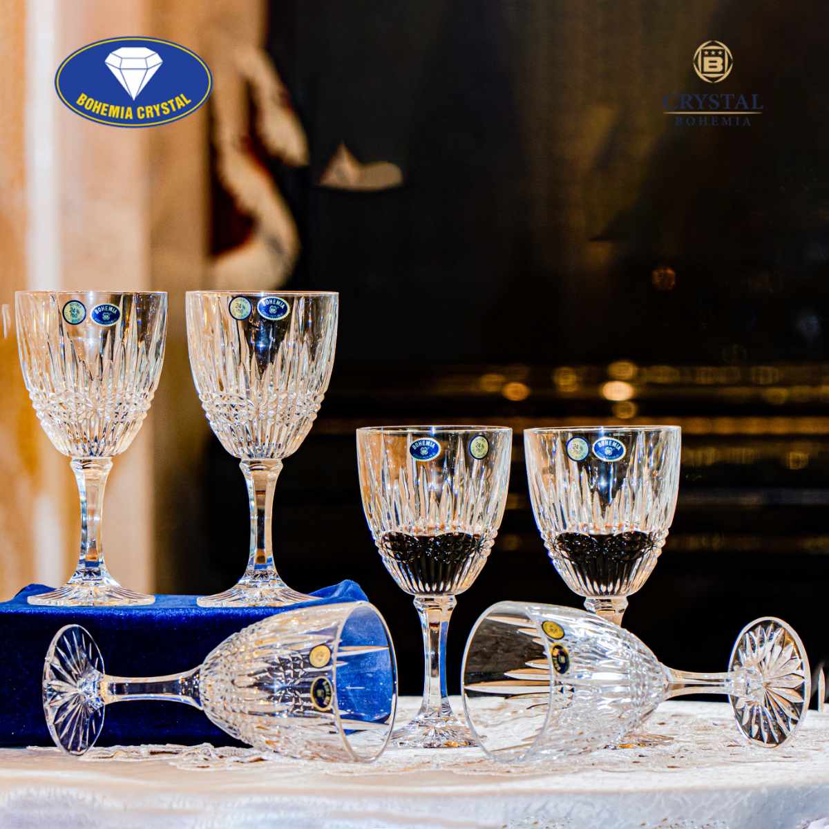 Фужери виготовлені з кришталю (24% PbO) та упаковані у темно-синю коробку.